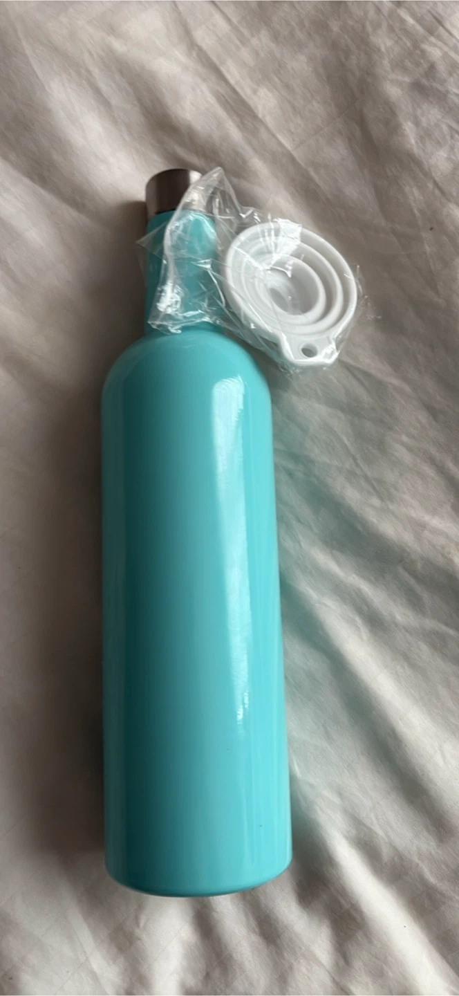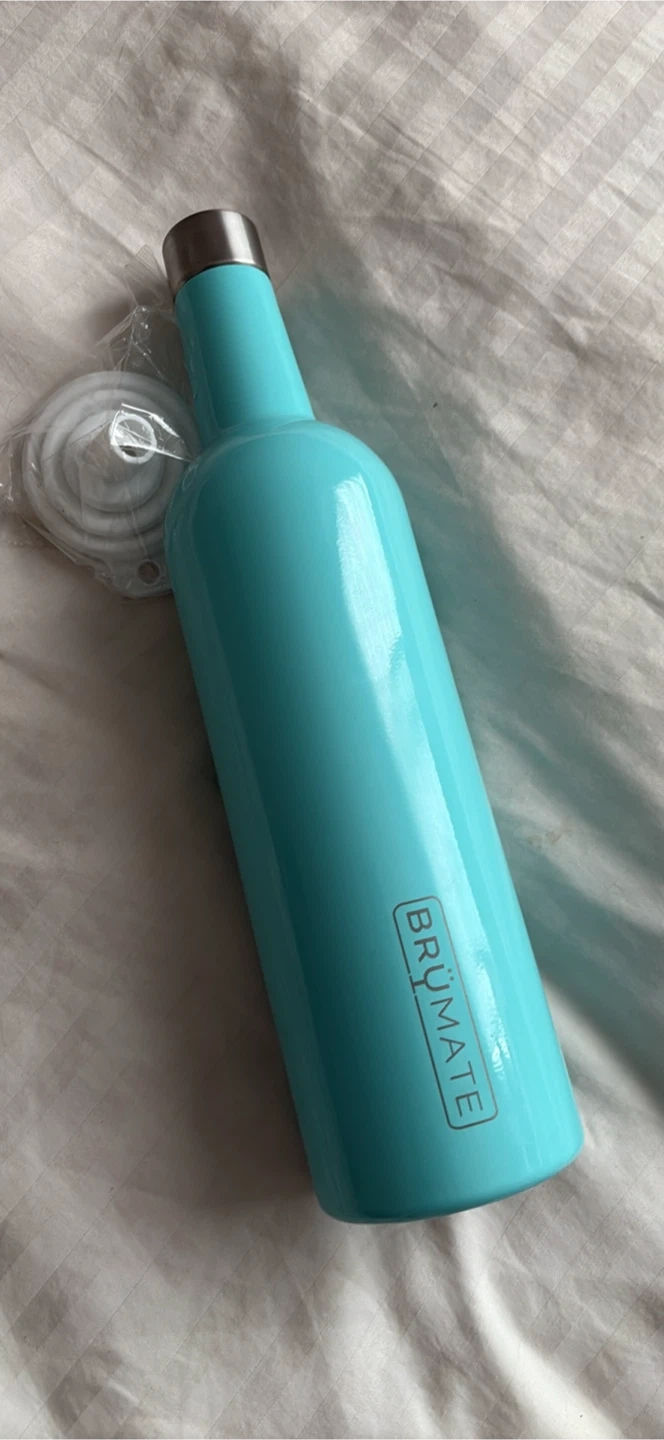 Keep your wine perfectly chilled with this BrüMate Winesulator! It's a 25oz bottle in a beautiful turquoise colour. It comes with a funnel to help with pouring. Great for picnics, BBQs, or just relaxing at home