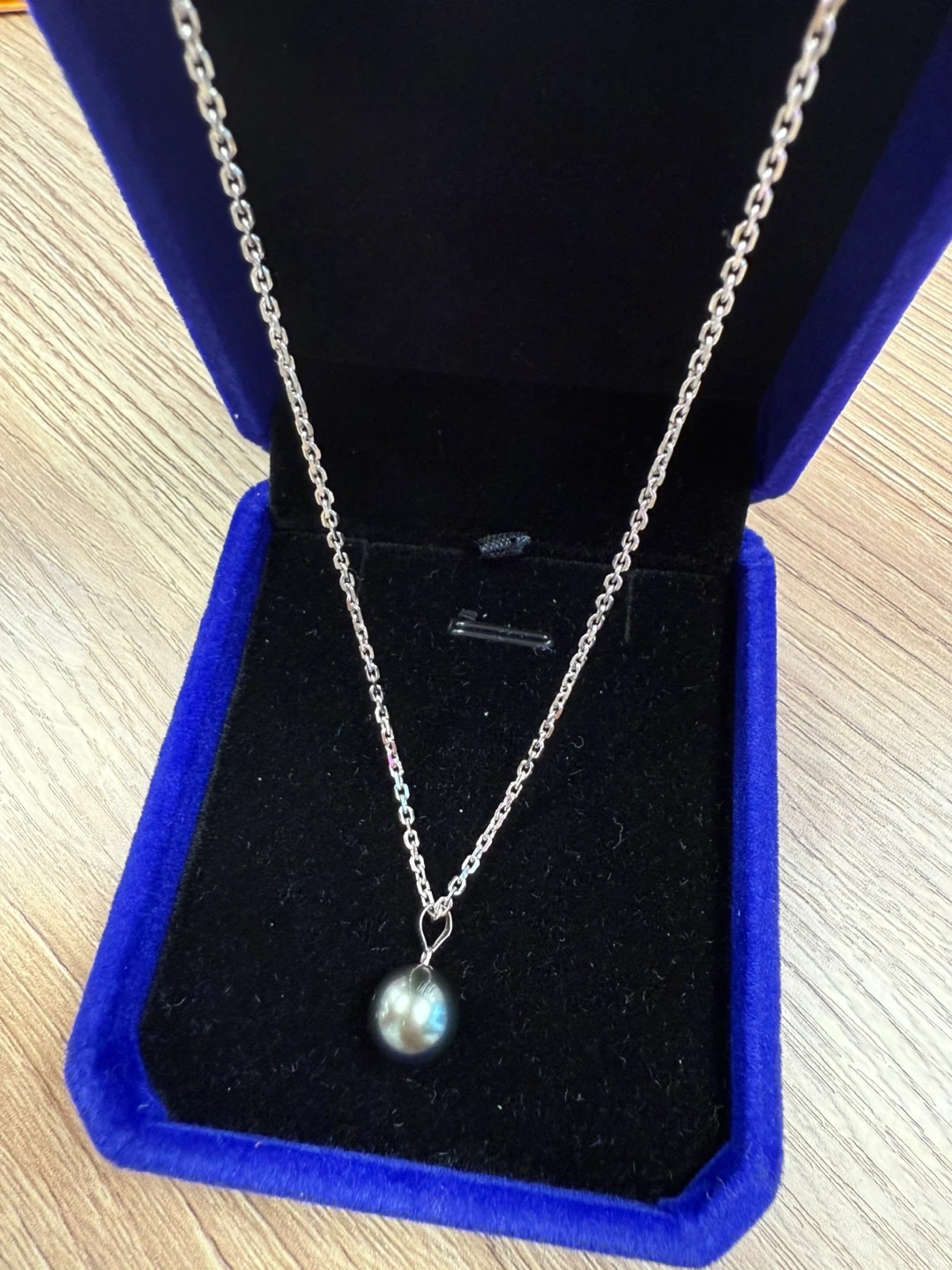Here's a lovely black Tahitian pearl pendant necklace! It has a beautiful, classic look. The pearl has a nice lustre and shine to it. Perfect for any occasion! Chain is 18K gold plated silver 40+2+3 cm long.