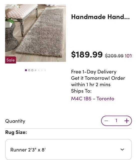 Anchor any decor with this glamorous 2'3" x 8' handmade runner finished in dark taupe with silver highlights in the rich thick silky shag pile adding a plush cushion underfoot. -Handmade in India -80% polyester/20% cotton construction -Canvas backing -Thick 1.75" pile height Brand new $55 pickup in Binbrook. Retails for $190. Considering the number of no-shows for pickups item will be sold on a first come first serve basis without deposit. All sales final, no refunds or exchanges. Please measure space before purchasing. Thank you for understanding. Due to the difference of device screen color settings, some rug colors may vary slightly. We try to represent all rug colors as accurately as possible. Color will be affected by environment, lighting, and time of day. Debit and credit also accepted #5BMX617