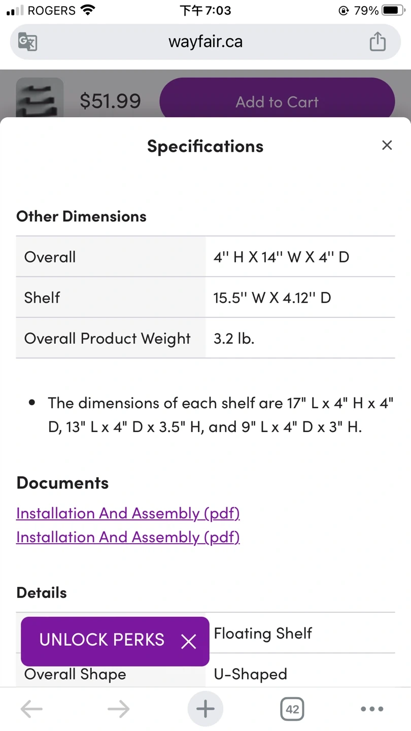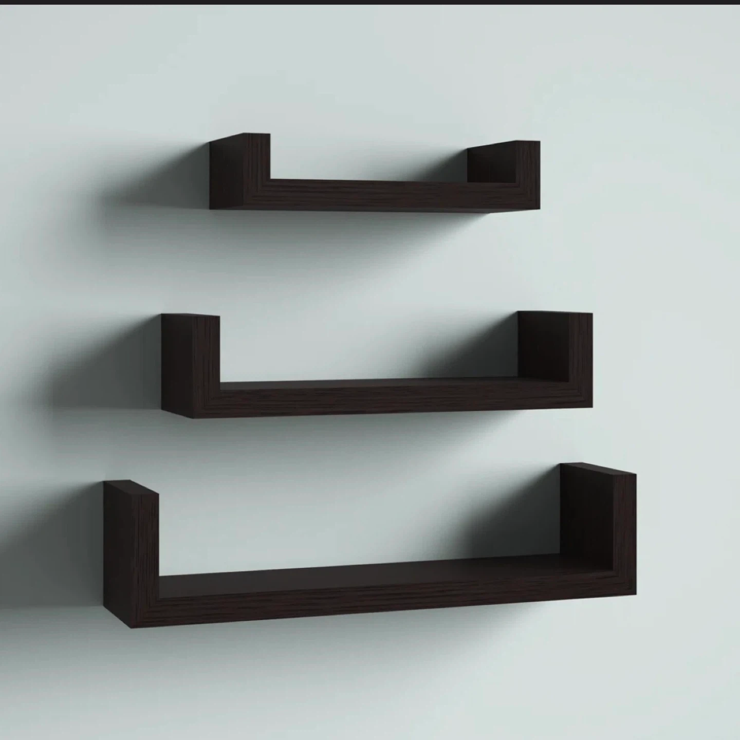 The dimensions of each shelf are 17" L x 4" H x 4" D, 13" L x 4" D x 3.5" H, and 9" L x 4" D x 3" H. 🌷Brand new in box ,sealed Material Manufactured Wood