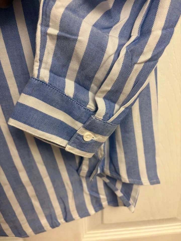 Brand new Amazon Essentials Women's Long-Sleeve Woven Blouse, Blue Stripe, size: Medium. Price is firm.