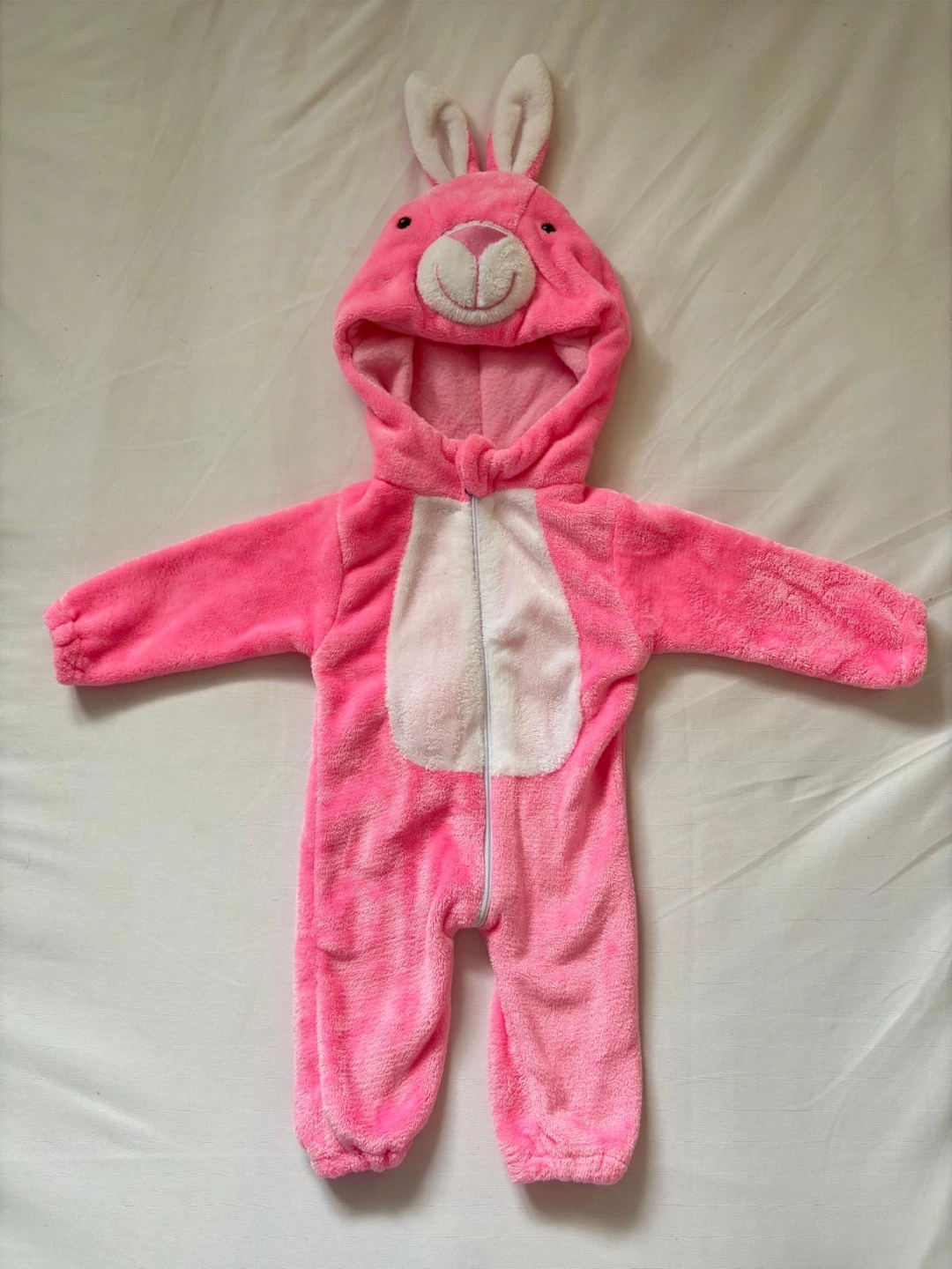 Adorable pink bunny sleepsuit. Soft and cozy. Perfect for your little one. Zip closure. Size 3-6 months.