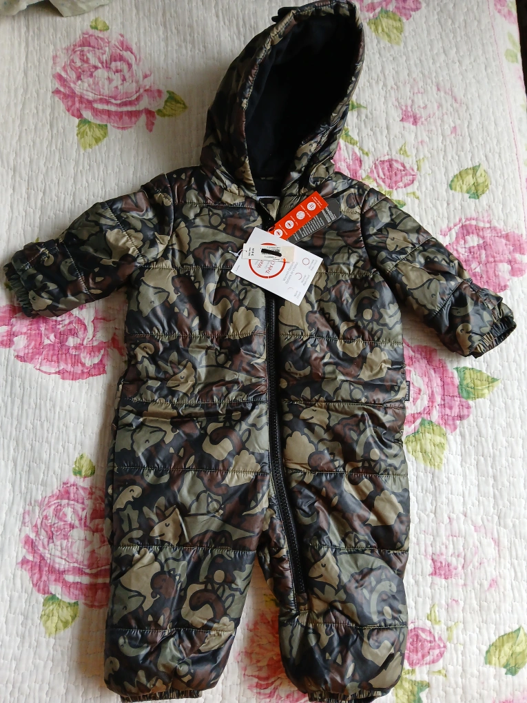 Camouflage print snowsuit with a fleece lining. Water resistant and breathable. Warmest warmth option.Brand new with the tag, Cash only.Pick up only, no delivery.