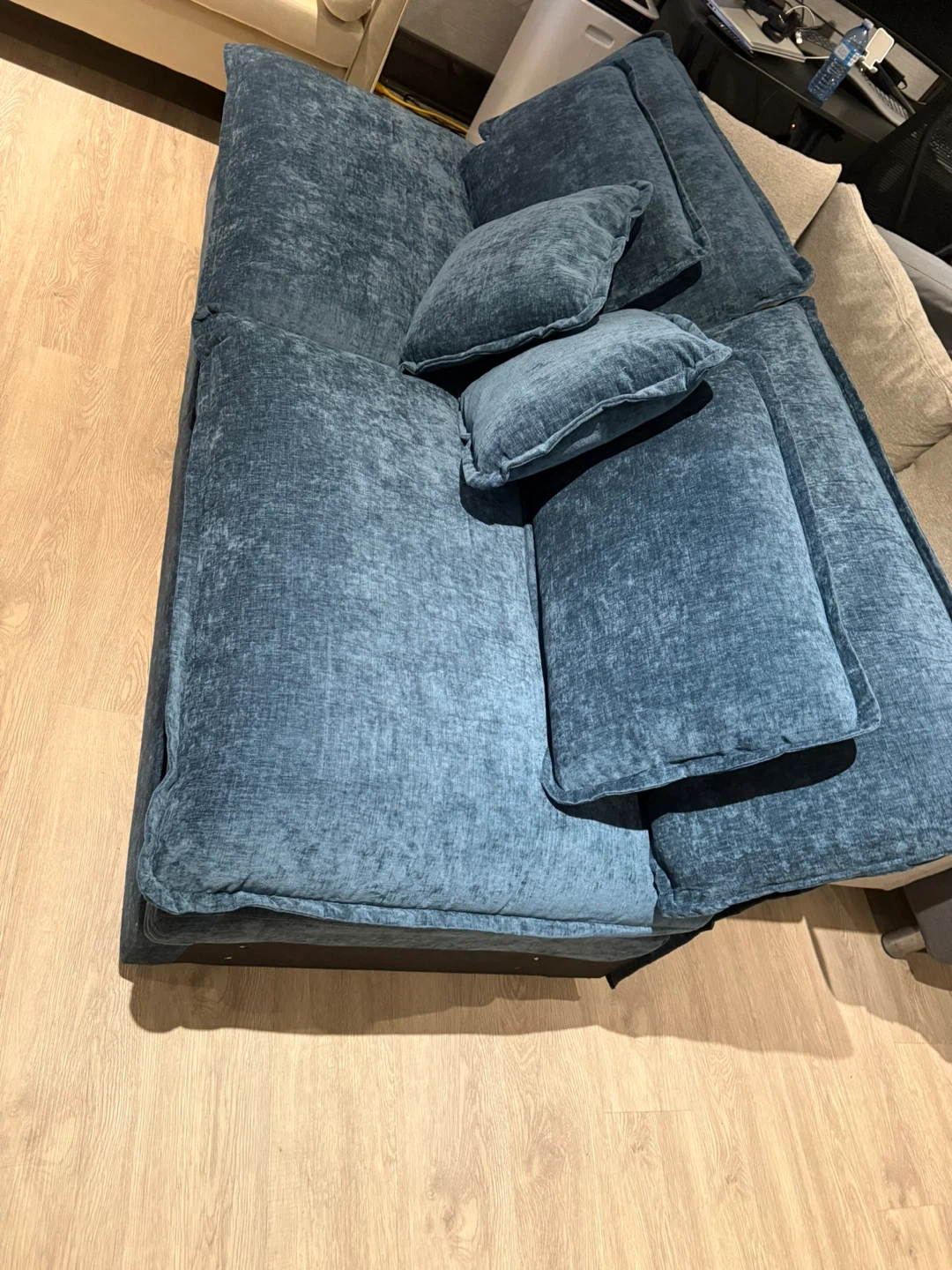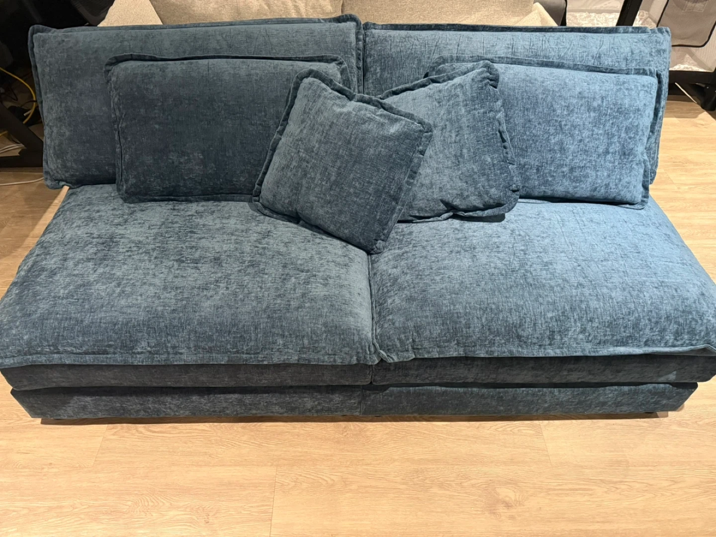 Selling a comfy Brand New Blue Velvet Armless Comfortable Sofa. and ready for a new home! The chenille material is soft and inviting, perfect for lounging. The modular design allows you to arrange it in different configurations to fit your space. It's a great piece to add to your living room!