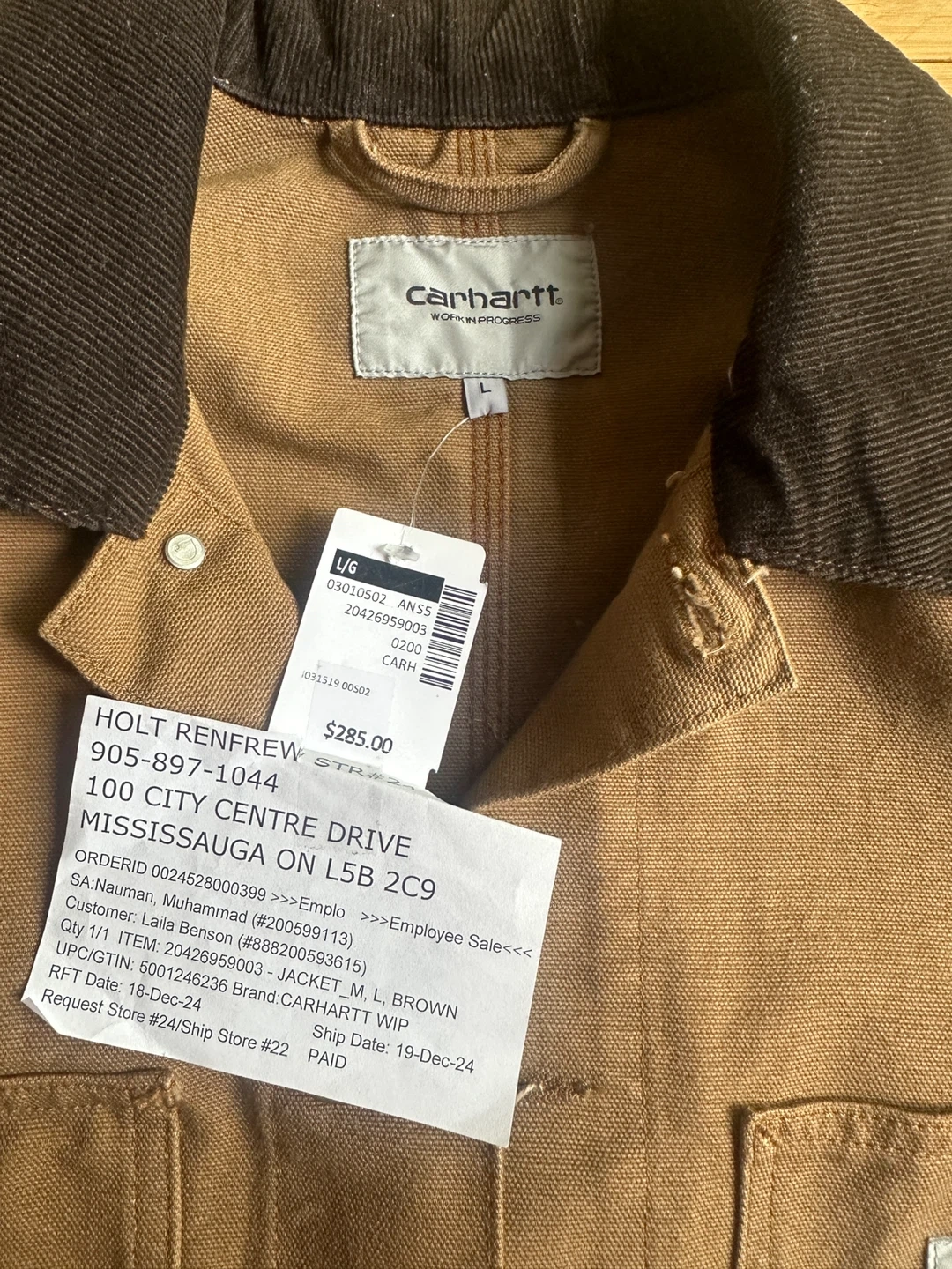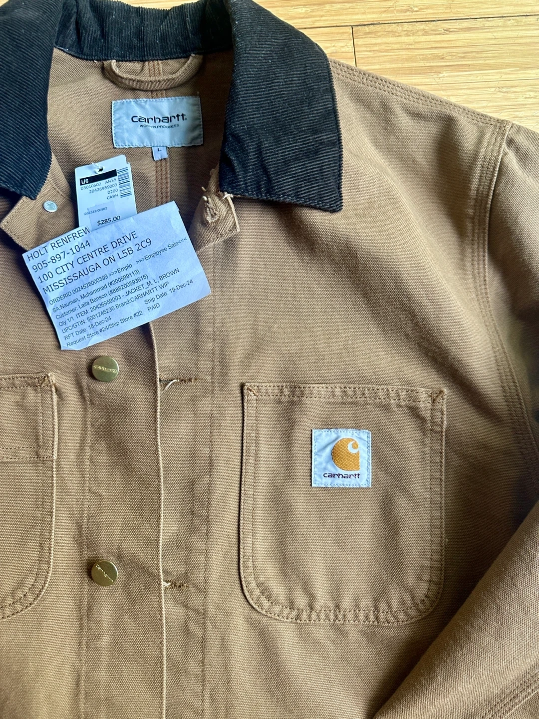 The vintage classic work wear coat. Beige Brown. Gift from holts but too small. Brand new w tags and bag. Men size large. Price is firm. FRIENDLY BUYER TIPS Pickup king bathurst area or uber courier. First come first serve. Etrans required to hold. Pls view my other ads. Thank you.