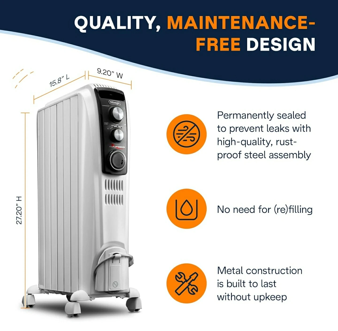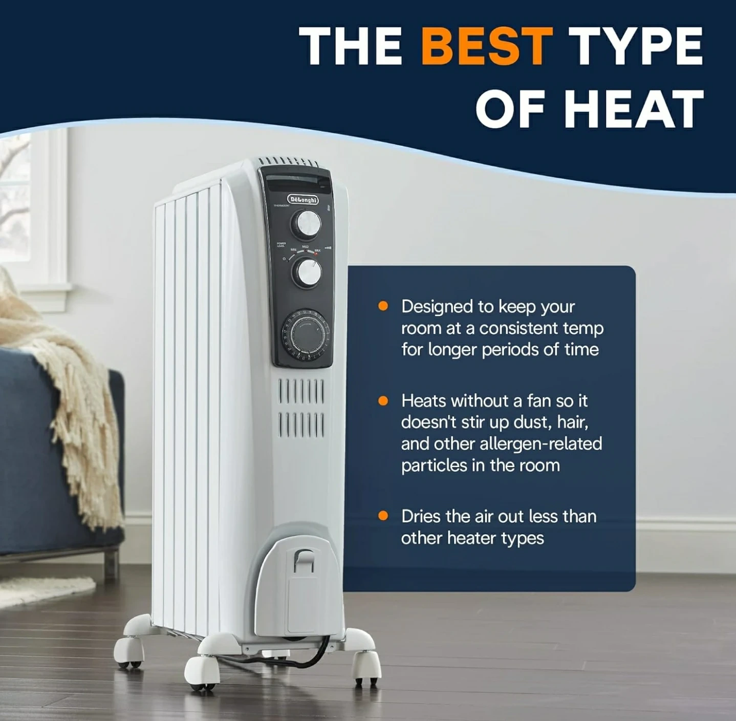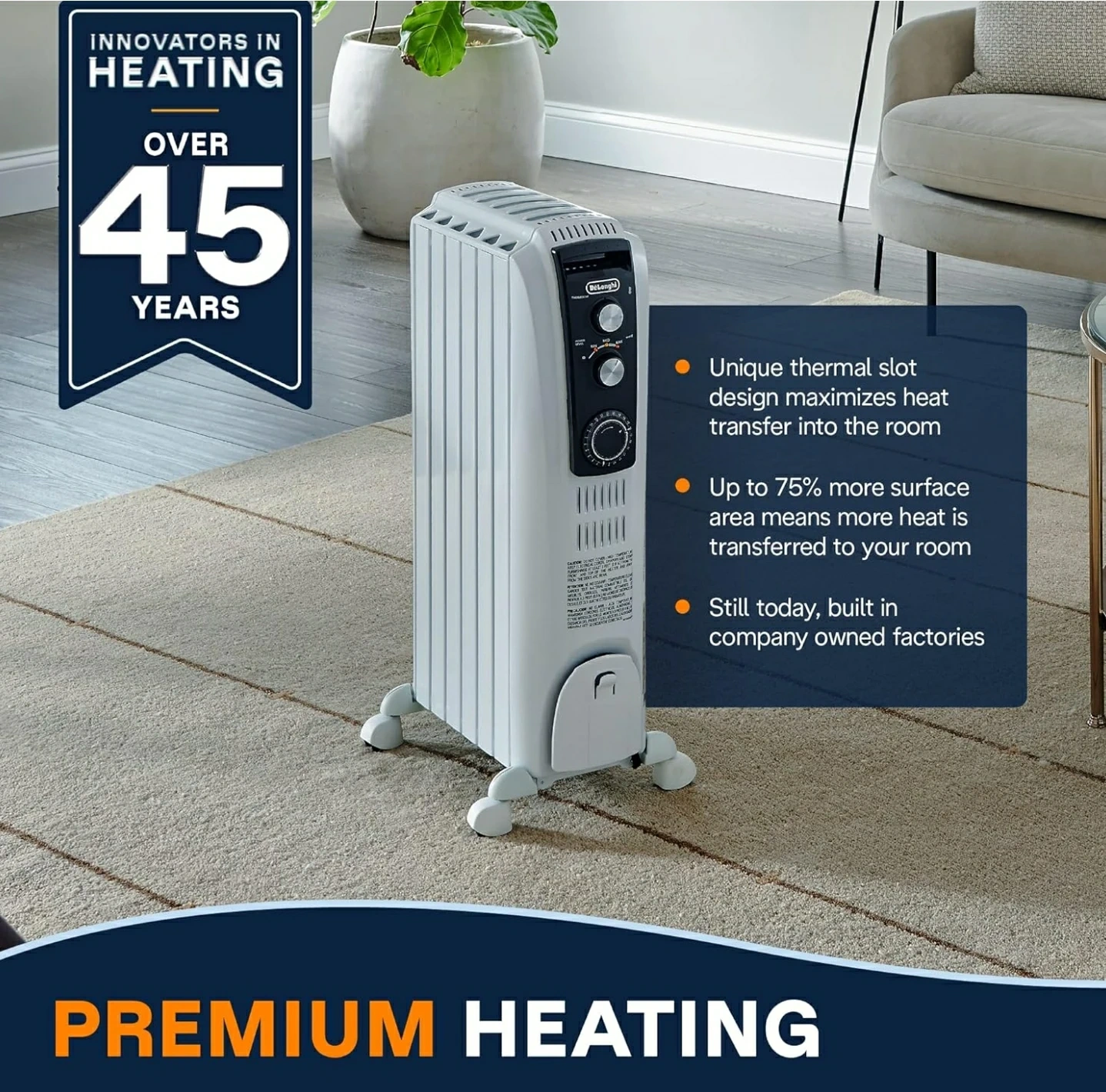 Brand New De'Longhi Dragon Oil Filled Radiator Heater, 1500W Electric Space Heater for indoor use, portable room heater, programmable timer, full room heater with safety features, TRD40615T Openbox Never used, new.
