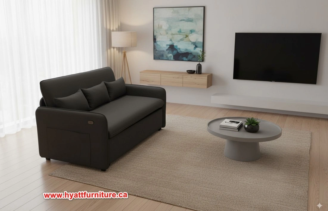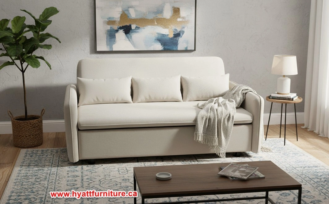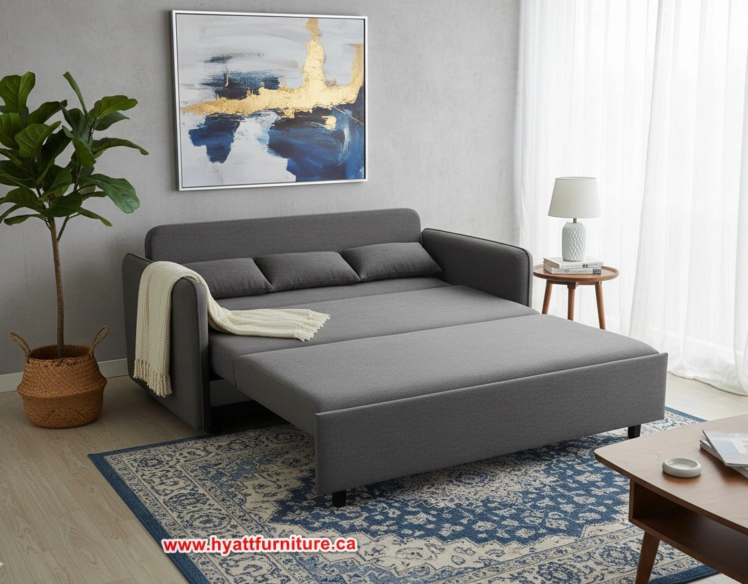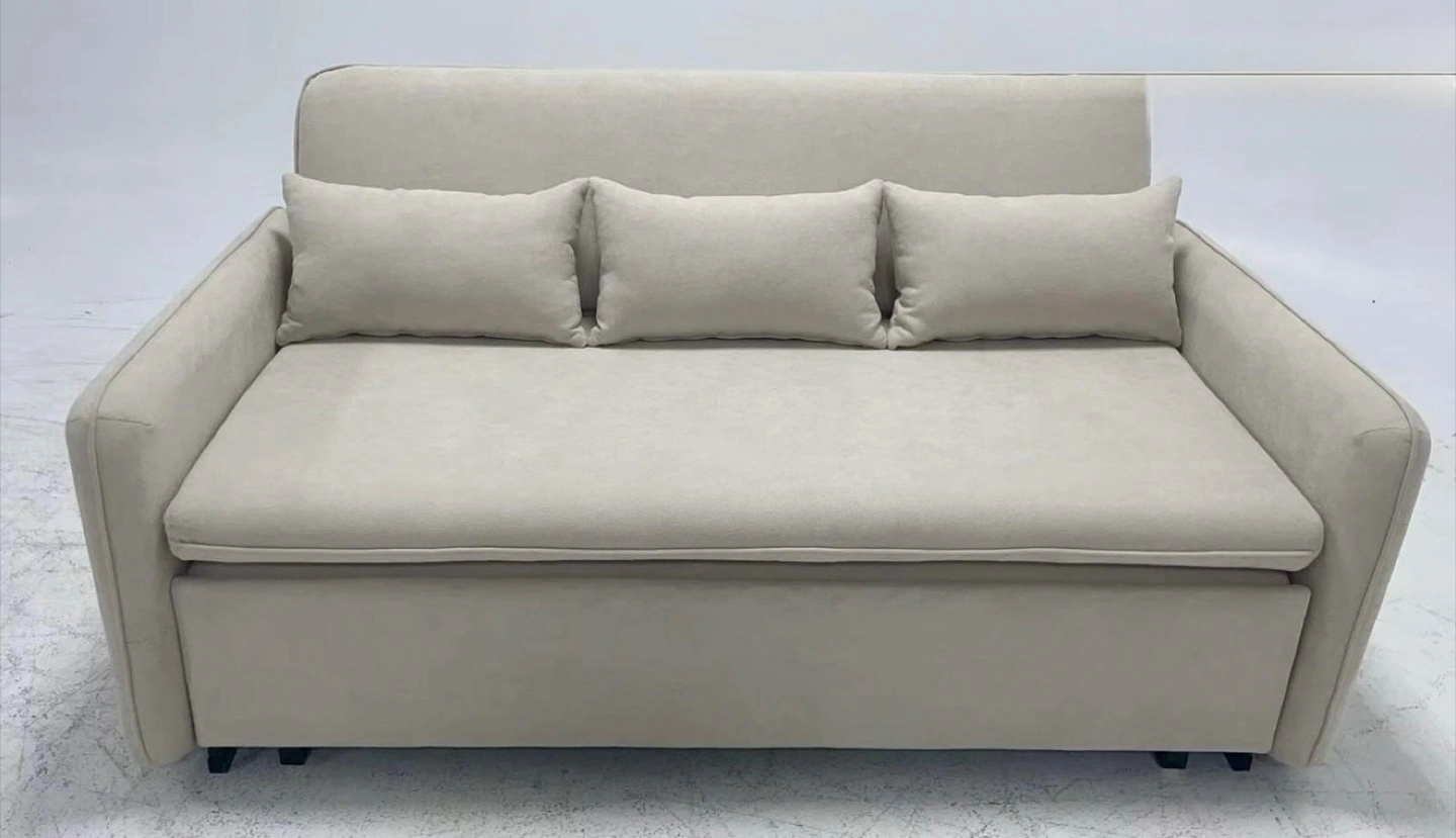 Selling a sofa bed that's brand new! It comes with three matching pillows. This sofa can be converted into a bed, perfect for guests or small spaces. It is available in beige, grey, and black. 3 seater over size: 68”x34”x34” pullout bed size: 60”x75”