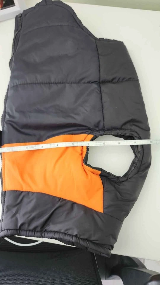 Brand new dog coat. See pics for measurements. Approx back length 17.5", chest 20", neck 14". Was too big for my 9 lb poodle, and too small for 27 lb Tibetan Terrier.