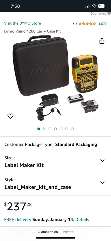Selling a brand new Dymo Rhino 4200 case kit with rechargeable battery. I purchased this label maker for work and never ended up needing it. DYMO RHINO™ 4200 Industrial Label Marker Printer. With its familiar QWERTY keyboard and library of over 150 symbols and terms for electrical, pro AV/security and facilities management, the Rhino™ 4200 gets industrial labeling jobs done fast and done right. “Hot Key” shortcuts enable you to quickly create and format wire/cable wraps, flags, fixed-length labels and more, while a “Favorites” key provides single-key access to your most commonly used labels, symbols and terms. With the Rhino™ 4200, you can print labels up to 3/4" wide in flexible nylon, permanent polyester and durable vinyl materials – plus directly onto heat-shrink tubes. Integrated rubber bumpers help prevent damage from on-the-job drops and falls. For industrial applications. It prints nylon polyester and nylon labels up to 3/4" (19 mm). Runs on 6 AA batteries (optional). The hard case kit contains one Industrial RHINO™ 4200, a Li-ion rechargeable battery, AC adapter and 1/2" vinyl label cartridge. I also have a BRAND new rechargeable battery being sold separately for $45.