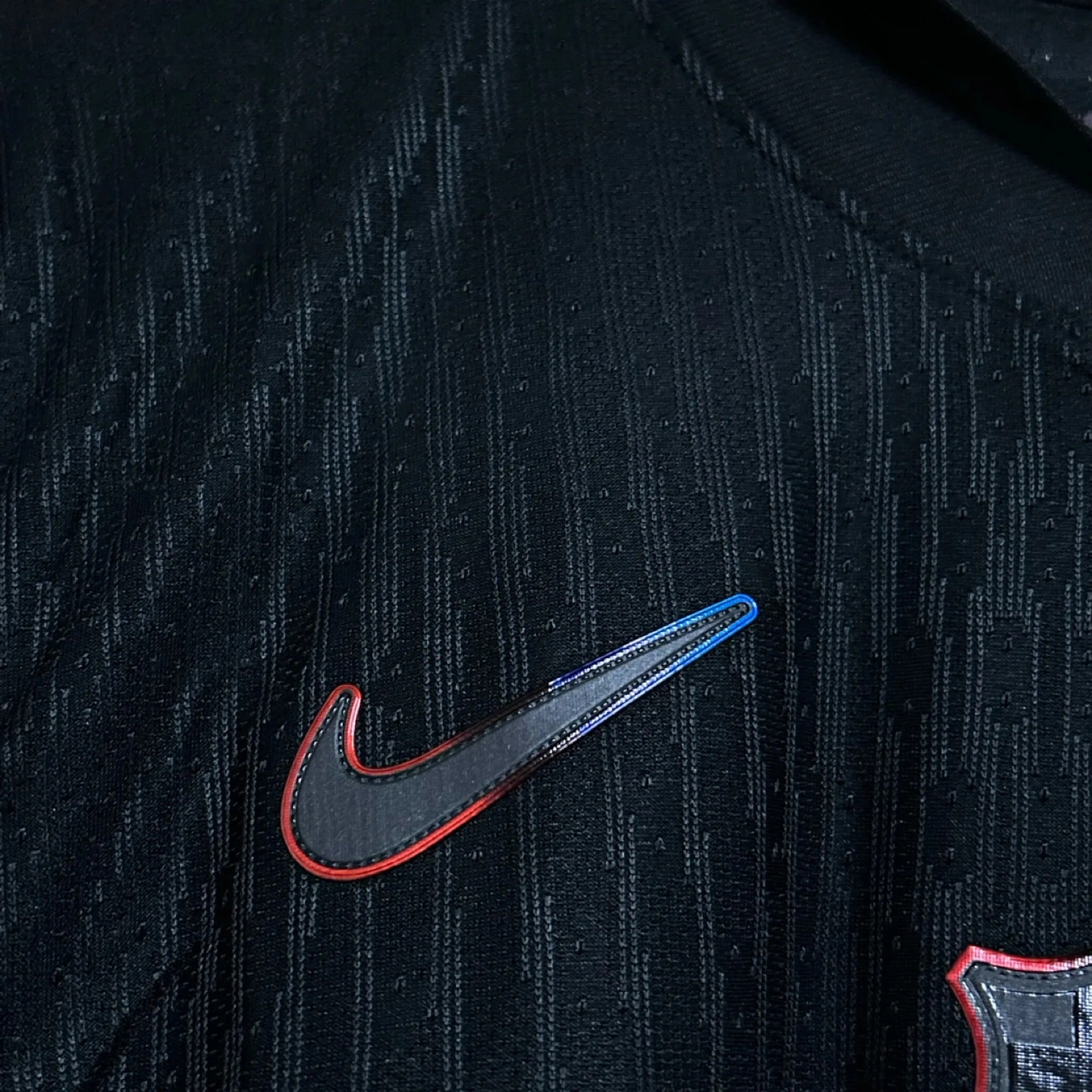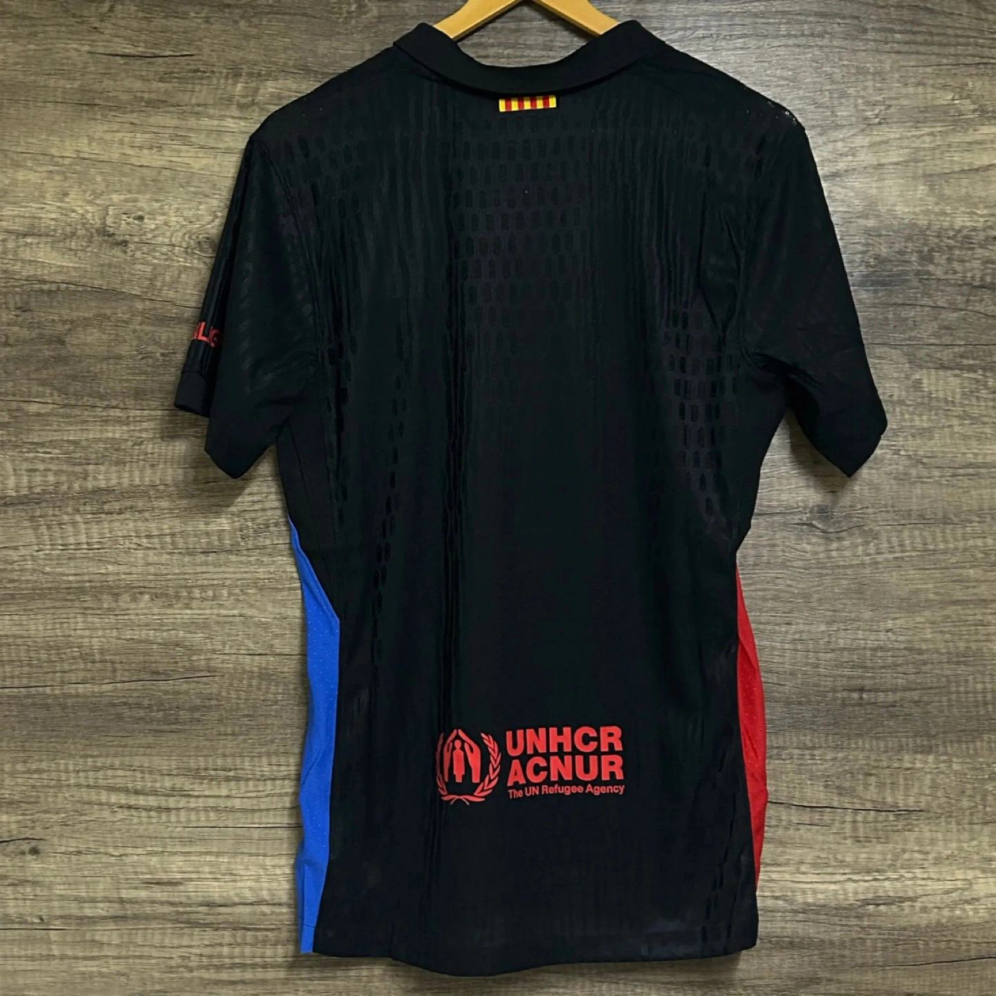 Selling a Nike FC Barcelona soccer jersey from the 2023/24 season! It's black with the FCB emblem and a Spotify logo. The jersey also features the UNHCR ACNUR logo on the back. Perfect for any Barca fan! Medium size (player version are smaller than regular medium)
