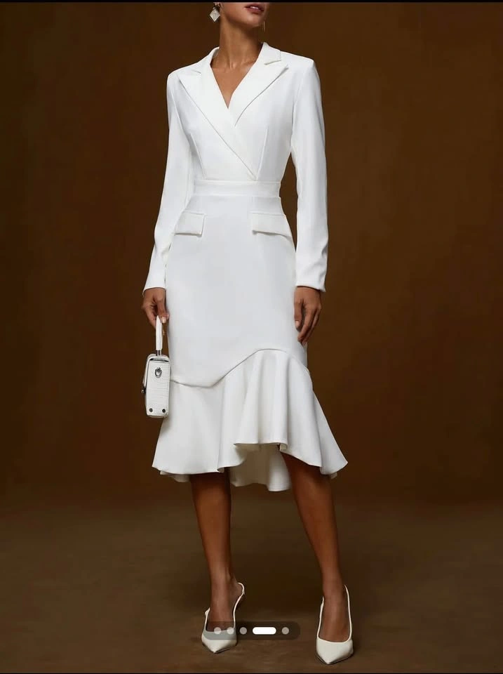 Brand new Fehaute white ruffled shawl collar mermaid midi blazer dress in size XL. SPU: 4AH1RDR95B0FF Decoration/Process: Irregular Craftsmanship Silhouette: Mermaid Edition type: Regular Fit Elasticity: Micro-Elasticity Closure Type: Back Zip Accessories: no Activity: Business Casual Neckline: Lapel Collar Sleeve: Long Sleeve Dress length: Midi Style: Elegant Fabric: Spandex8%; Polyester92% Pick up in Courtice. Please check my other listings!