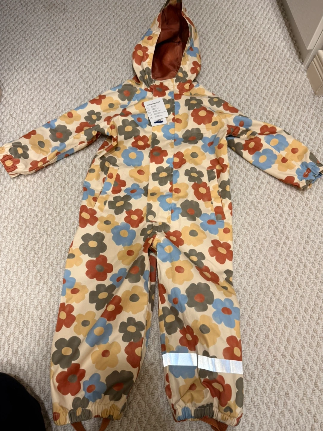 This adorable rain suit is perfect for keeping your little one dry and stylish on rainy days! The floral pattern is so cute, and the size is 2T. It's in new with tags condition and ready for a new home
