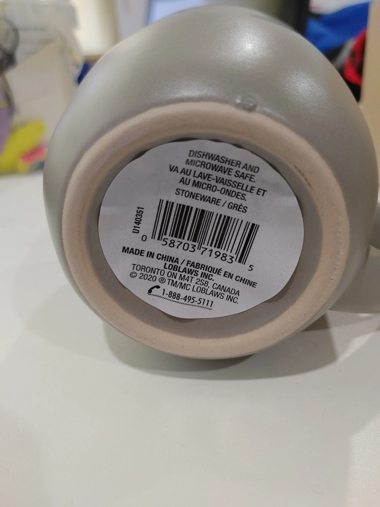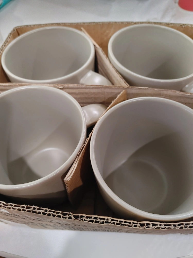 🧡FOUR GREY/ PUTTY COLOURED MUGS. 🧡ALL ARE BRAND NEW. 🧡VERY DURABLE. I AM USING ONE AS MY DAILY COFFEE MUG FOR OVER FIVE YEARS. 🧡MICROWAVABLE & DISHWASHER SAFE. 🧡PURCHASED AT LOBLAWS. 🧡I AM LOCATED IN THE YONGE AND STEELES AREA FOR PICKUP.
