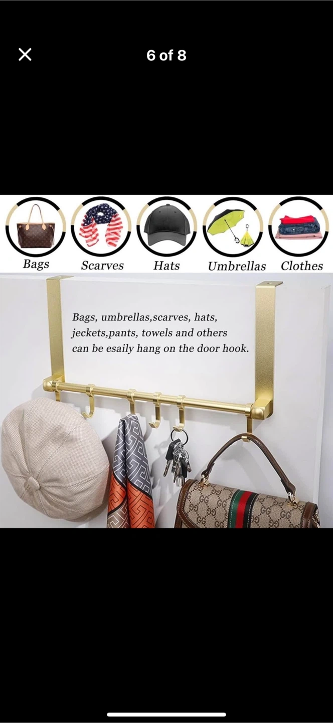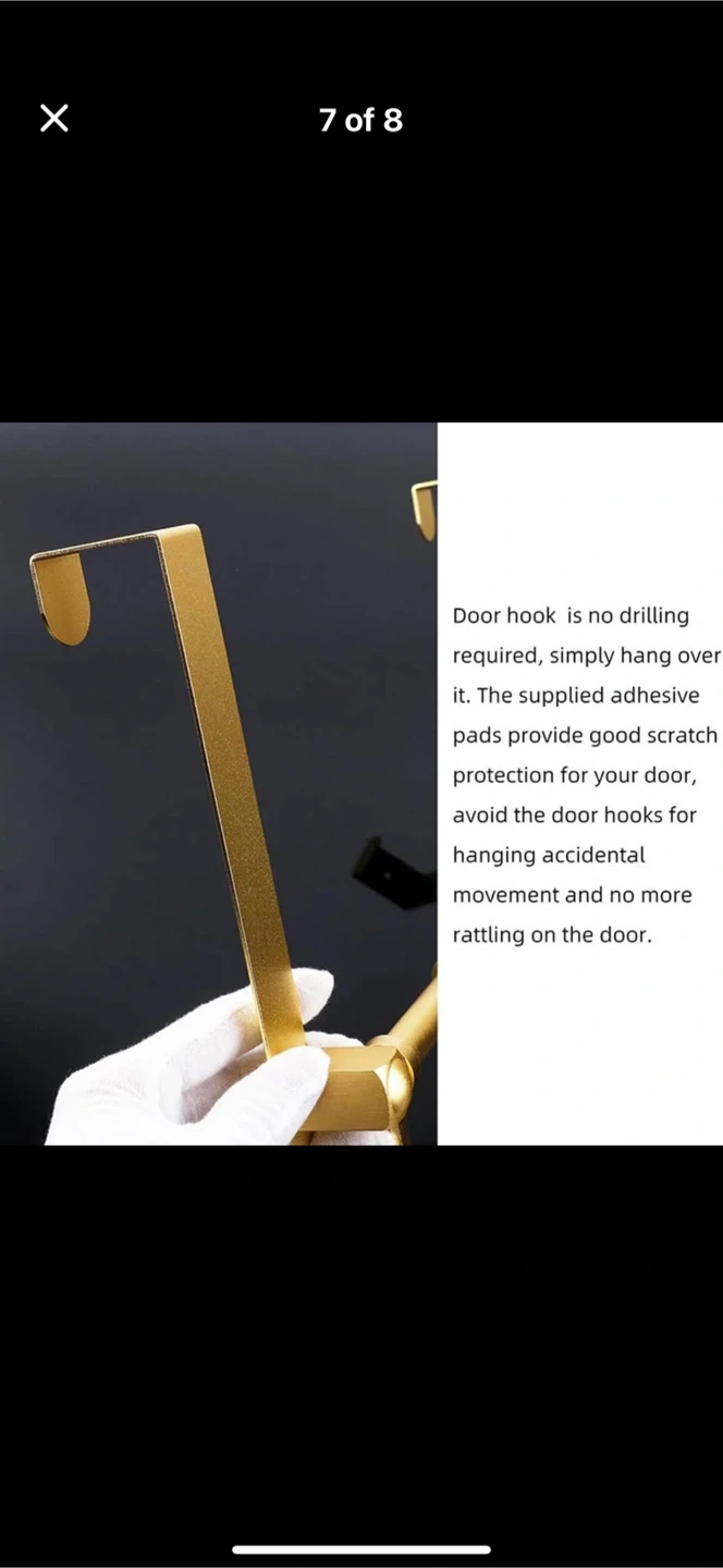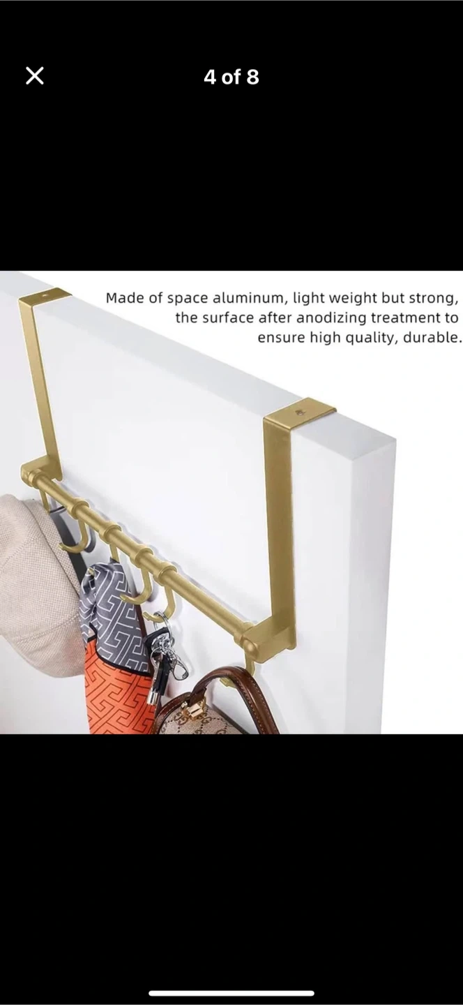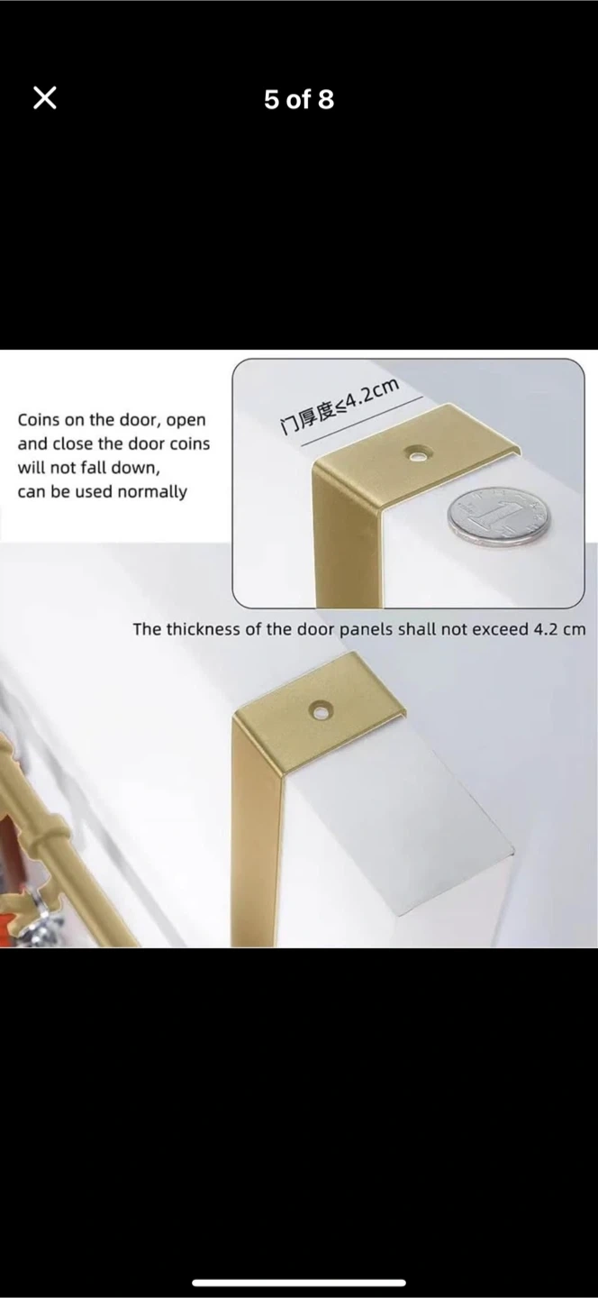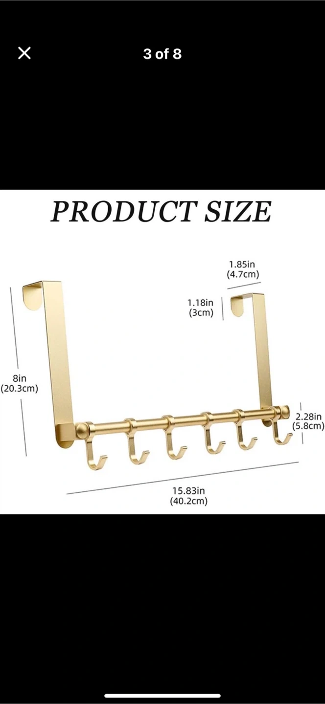 Keep your space organized with this over-the-door hook rack! It's made of space aluminum, making it lightweight yet strong. The surface has an anodized treatment to ensure high quality and durability. - Dimensions: 8 inches (20.3cm) tall, 15.83 inches (40.2cm) wide - Hook depth: 2.28 inches (5.8cm) - Door thickness should not exceed 4.2cm Only available for pick up