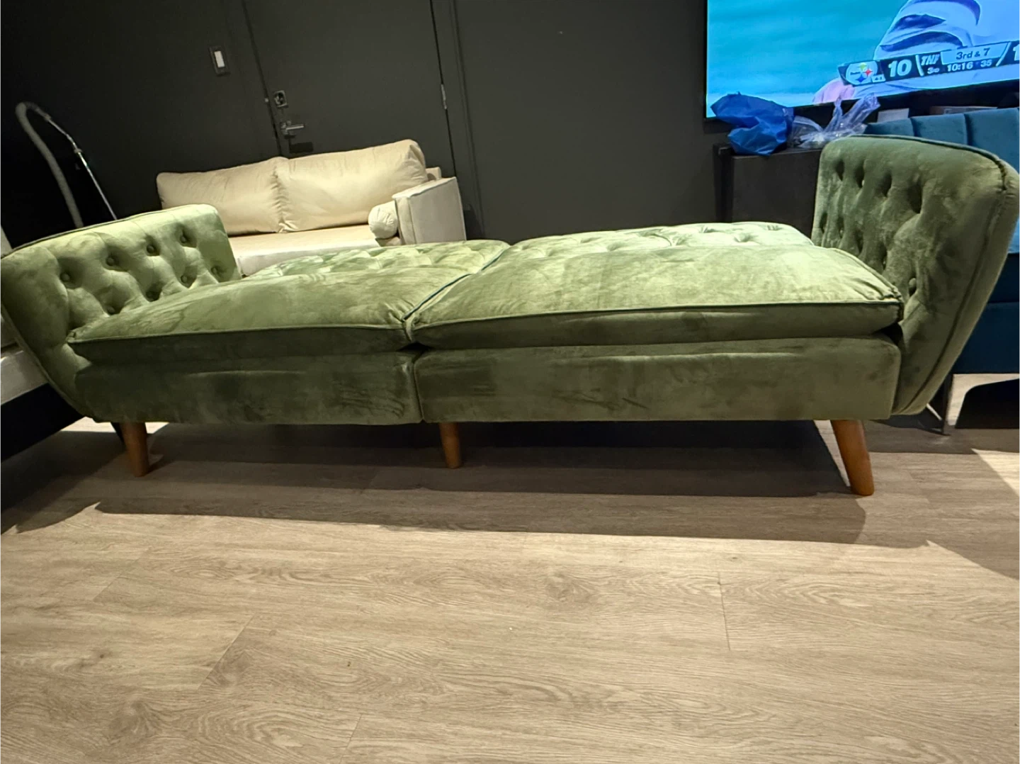 Show allBrand New Green Velvet Tufted Sofa Futon with Memory Foam