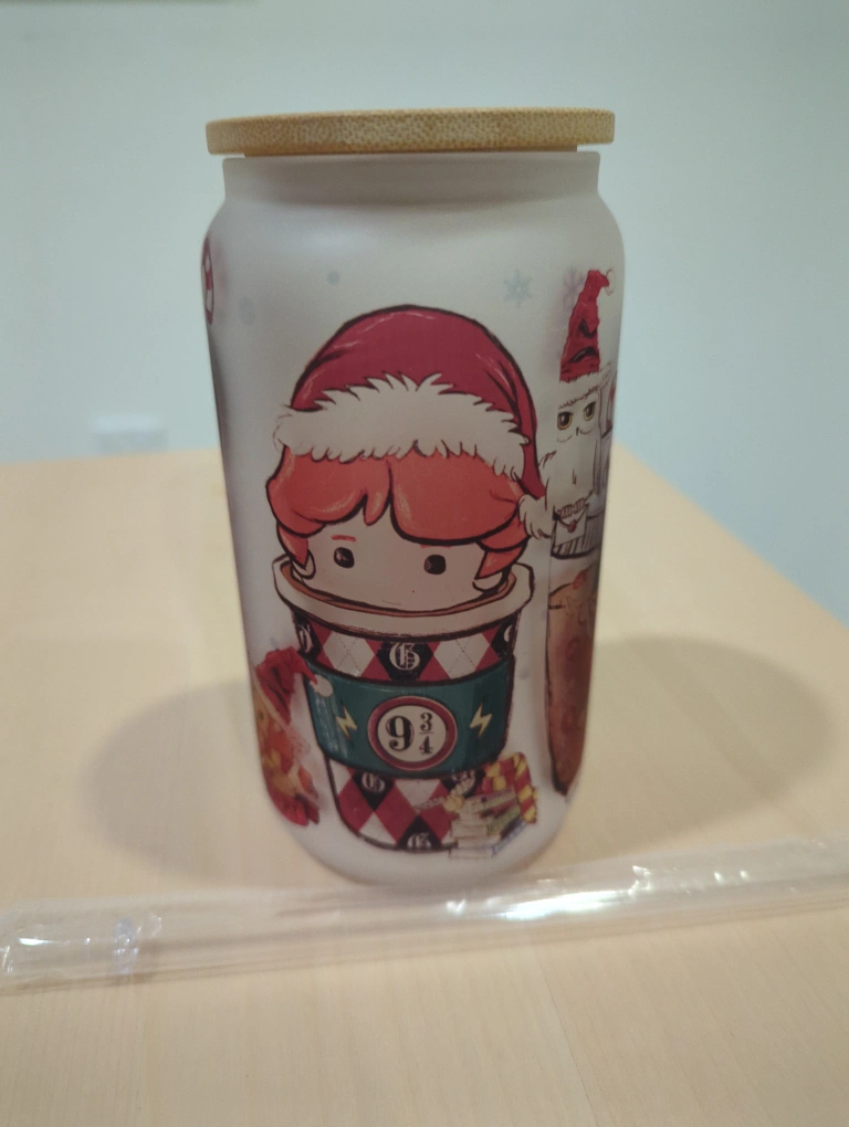 Frosted glass tumbler with a lid and a straw. Features Harry Potter characters in a Christmas-themed design. Can be a good gift for any Harry Potter Fans 😄 Pickup: Around Warden & Steeles ⭐Cash Only* ⭐ Responding to serious inquiries only ⭐ Price is firm.