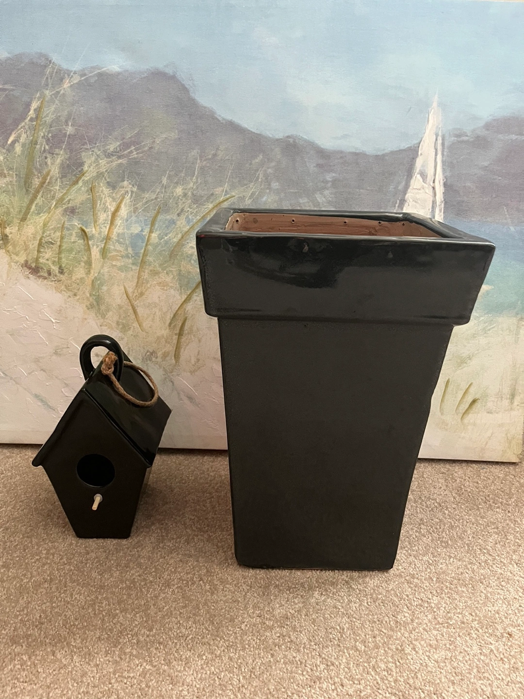 McCowan and 16th porch pick up. Beautiful heavy glazed pot Measures 14” tall x 9” wide . Can be used inside or out.