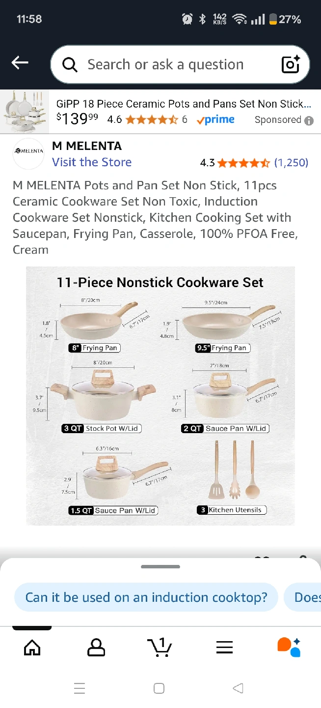 Selling a brand new M Melenta 11-piece ceramic cookware set! It's still in its original box and has never been used. This set includes a variety of pots, pans, and utensils, perfect for any kitchen. The cookware features a non-stick ceramic coating, making cooking and cleaning a breeze. It's also induction compatible. Get ready to upgrade your cooking experience!