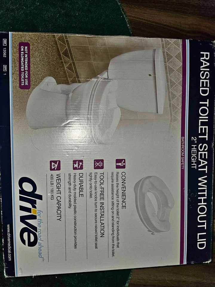 Never used in box. Raised toliet seat to help people use toliet without having to sit so far down. Pickup pondmills