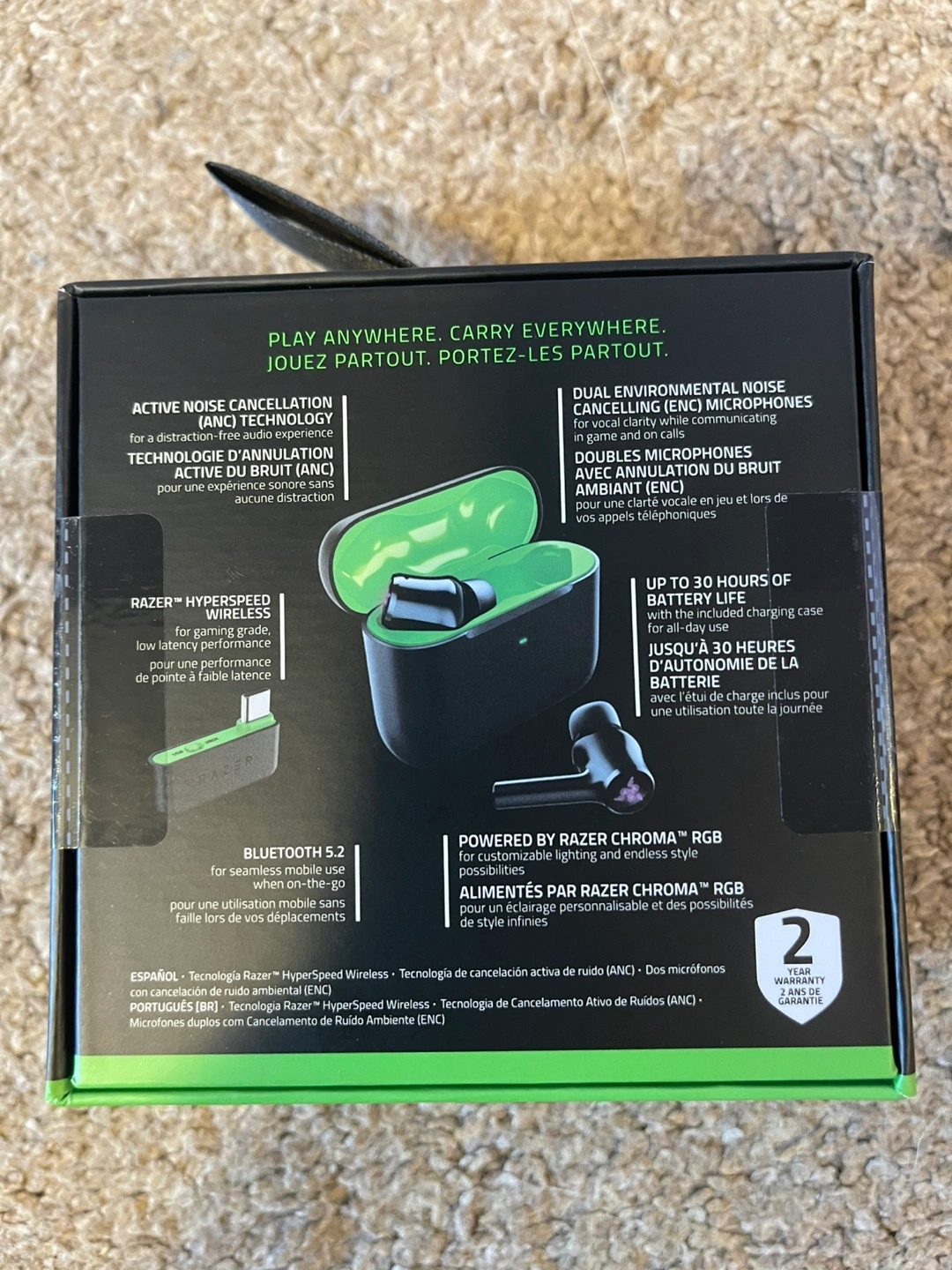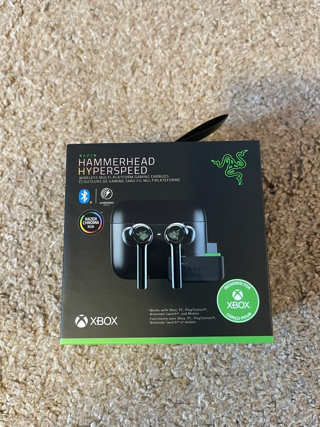 Brand new, still completely sealed. Purchased a couple months ago for $199.99 - receipt available. Razer Hammerhead Hyperspeed Wireless Gaming Earbuds, works great with everything (Xbox, PC, mobile, PlayStation, Nintendo Switch).
