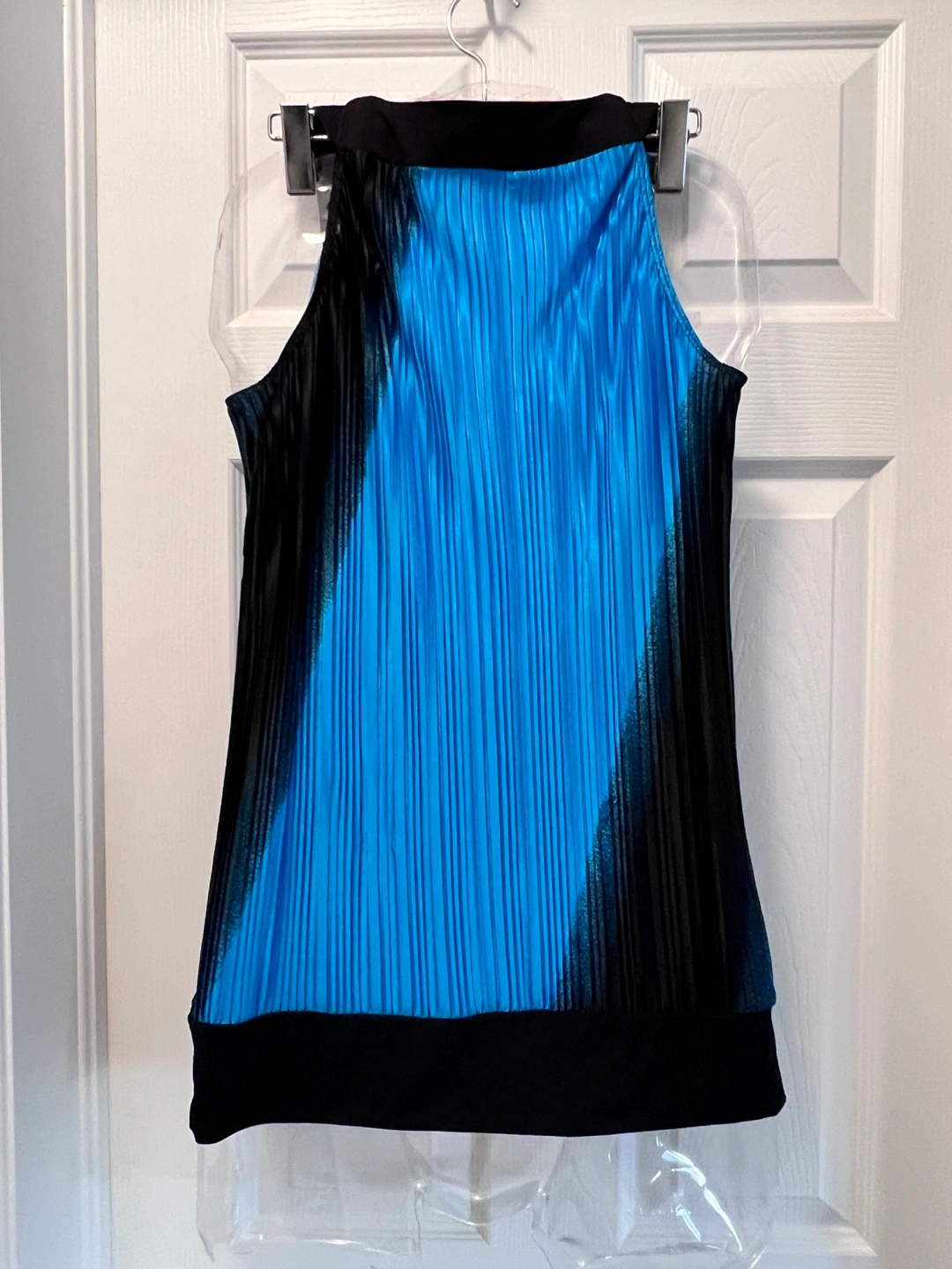 Stylish sleeveless top. Features a pleated design, colour block pattern in blue and black. Looks great with jeans or dress pants. Size 8. Cash only. Please check my other posts.