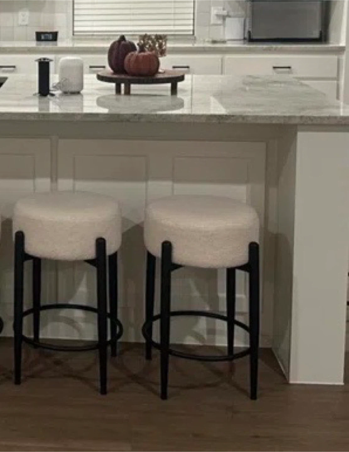 Brand New Set of 2 Bar Stools - White Boucle & Black