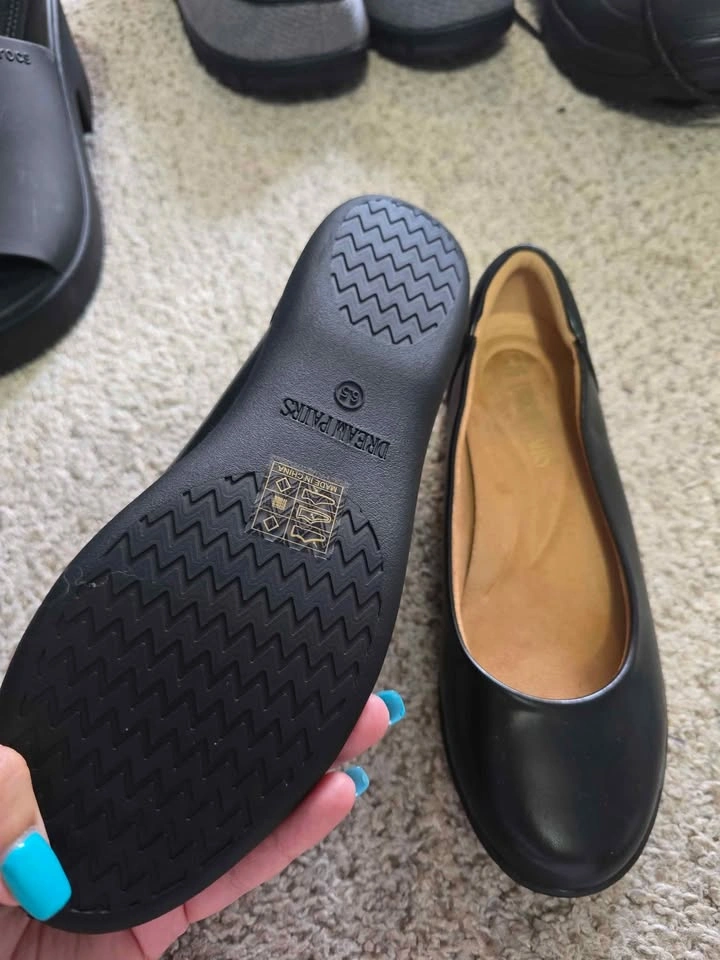 Classic Dream Pairs Black Flats โ sleek, comfortable, and versatile for any occasion. Perfect for work, casual outings, or dressy looks. Features a cushioned insole and non-slip sole for all-day comfort. ๐ฒ Asking: $15 (retail $40+) #TinyPriceMission #Flats #DreamPairs #BlackShoes #ComfortStyle #MissionBC #AffordableFashion