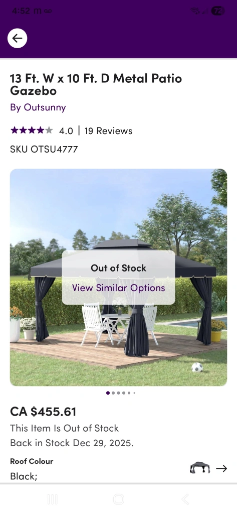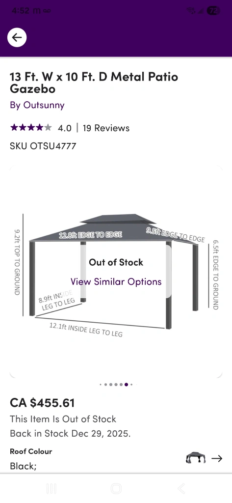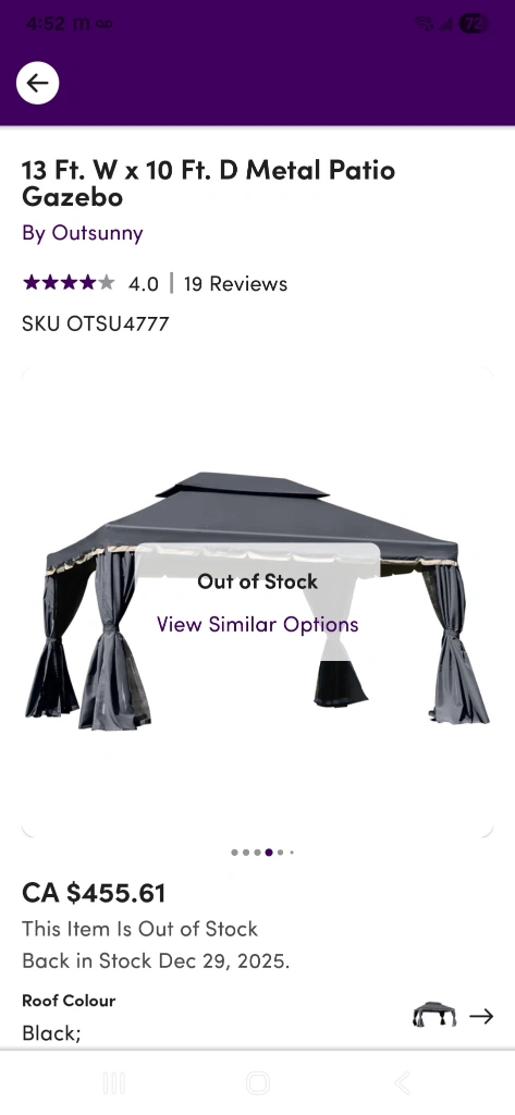 Brand new in box soft top gazebo 13 x 10 and color is Black asking $440 O.B.O. smoke bug free, dog friendly home pu elmwood/ ek or can deliver for a fee reason for selling: replacement no longer need.