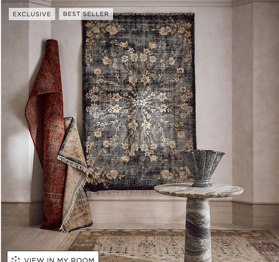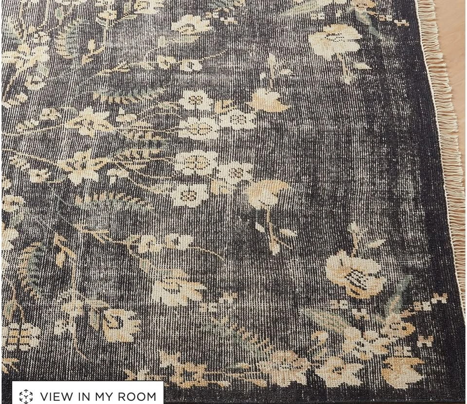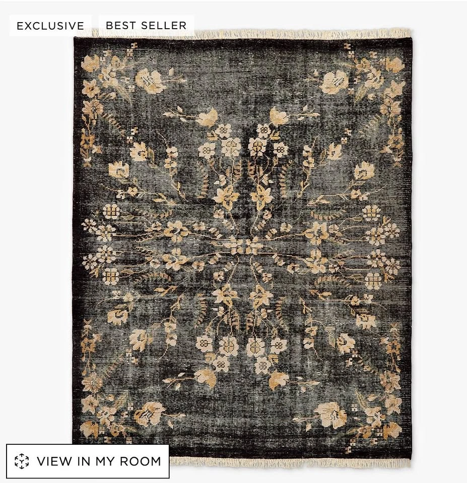Brand new CB2 Lavish hand-knotted black floral wool area rug, still in original packaging. 6'x9'. Just bought this and am moving unexpectedly and selling condo contents. I have not even opened it. Selling for $1100. Originally $1699 plus taxes on CB2. Pick-up only at College/Bathurst. Reproduced from an original fine art print from London-based artist Felix Green, known for his unique take on traditional botanical designs. Hand-knotted from pure New Zealand wool in shades of black with refreshing hints of white, yellow and green. Each area rug is hand-distressed for a unique vintage feel and will vary slightly in tone. At 15–16 knots per square inch, low-pile rug is ideal for medium-traffic areas. CB2 exclusive.