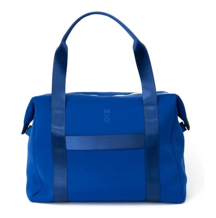 Smoke free pet free home Pick up only. Yonge & Steeles Item brought to driveway Beautiful blue Neoprene travel tote - has interior pockets and laptop sleeve *Wireless charger is NOT included** I purchased this as I was travelling and needed the charger that came with the bag. I did not use the bag so it is BRAND NEW with tag. 17.50 x 11.50 x 10.00 Inches Great for carryon, has that outside strap to attach bag to carryon luggage. Also works for overnight trips or gym