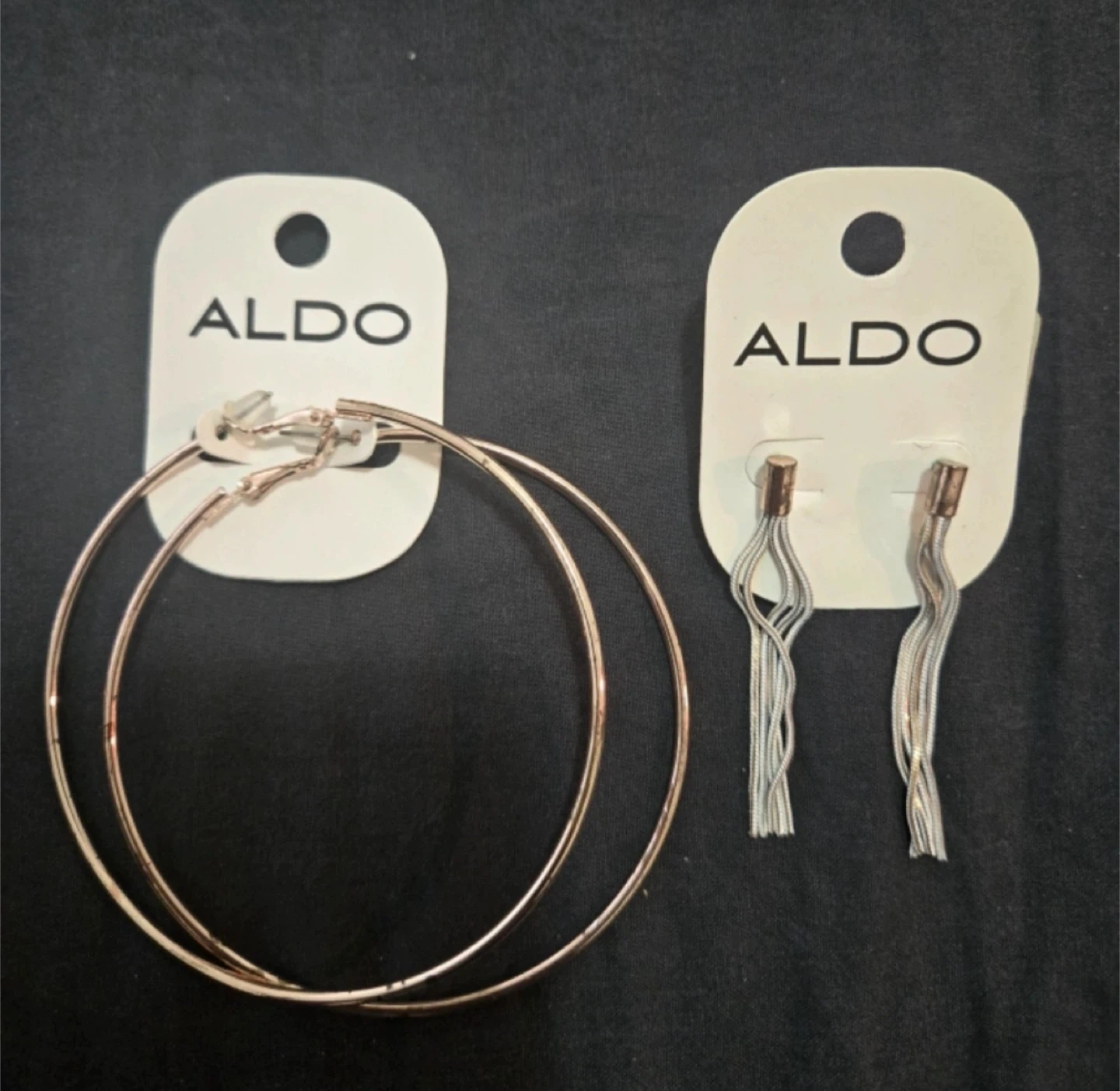 Please check my other listings, giving this for free with any purchase from my other listings. Two new pairs of Aldo earrings. Includes a pair of large hoop earrings and a pair of dangle earrings. Perfect for adding a touch of elegance to any outfit. Brand new, comes with tags. *Only one free item per purchase.