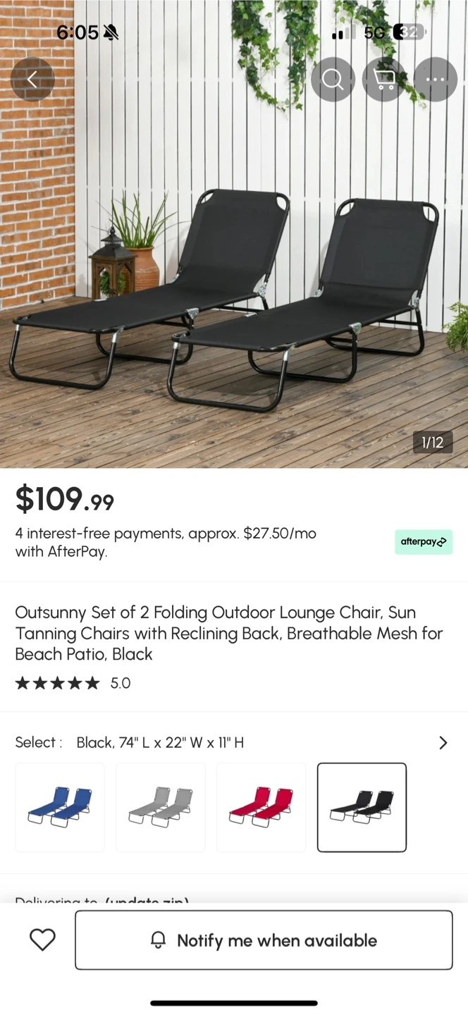 Brand new - still in box. Only one left! Selling a Outsunny folding outdoor lounge chairs in black! They feature a reclining back and breathable mesh, perfect for the beach or patio. Dimensions are 74" L x 22" W x 11" H. Originally bought for $109.99 + tax 45$