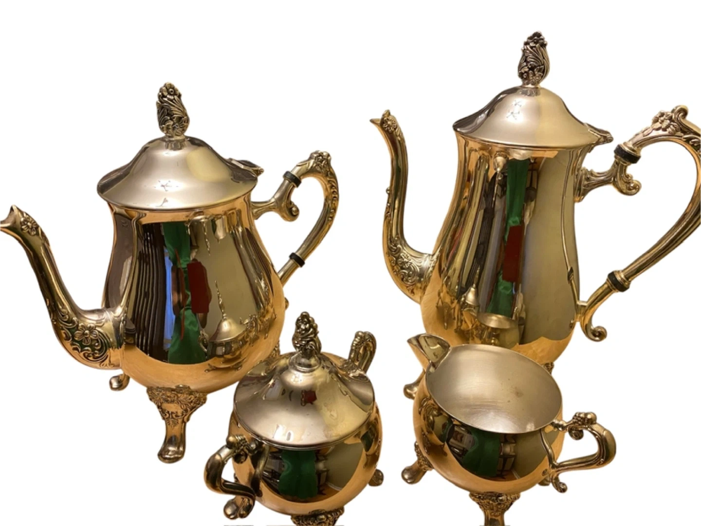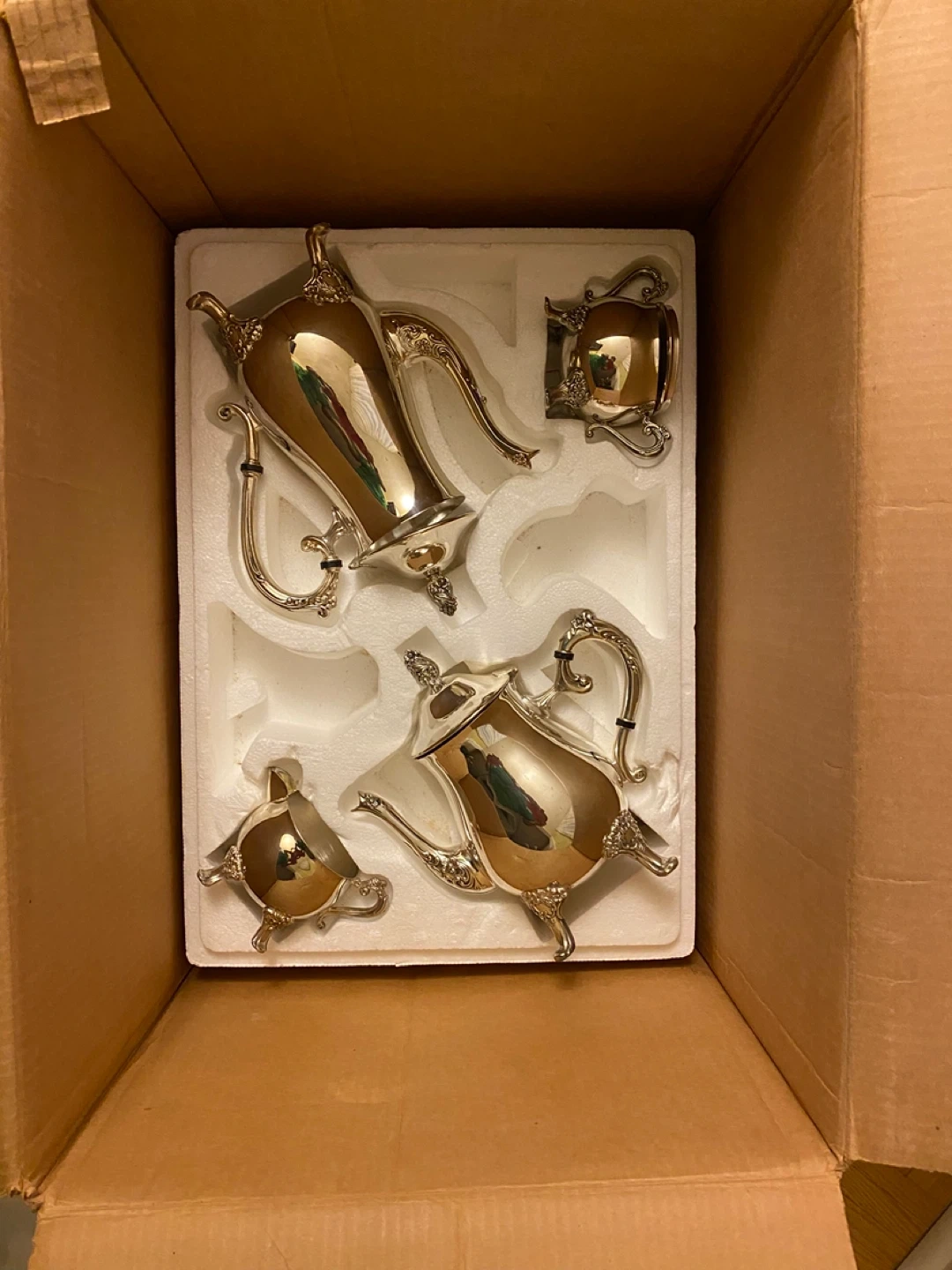 Perfect Christmas gift Selling a vintage silver plated tea set! It comes with four pieces, including a teapot, coffee pot, sugar bowl,