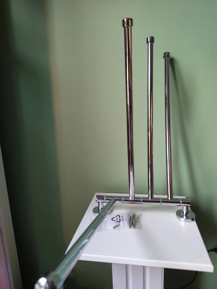 Four-arm, 180-degree rotating chrome towel rail. Wall mounted. Single piece, no assembly required. Strong bearing capacity, clean light, convenient and includes mounting hardware. Great for workout or gym rooms. New, never installed. Open to offers.