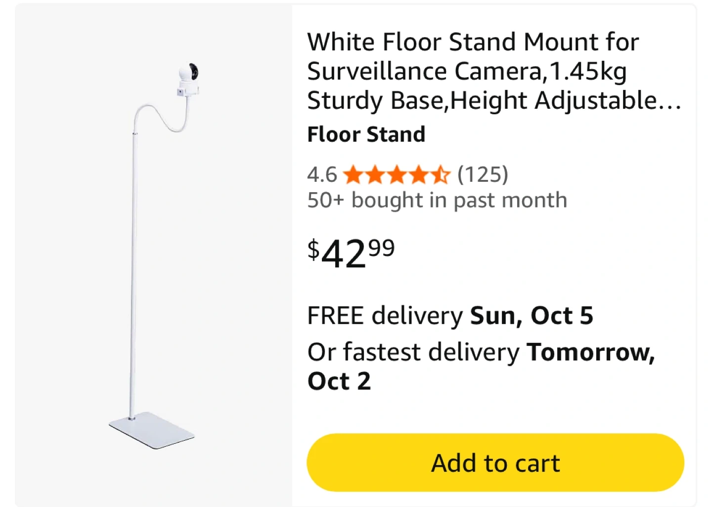 BRAND NEW White Floor Stand Mount for Baby Monitor