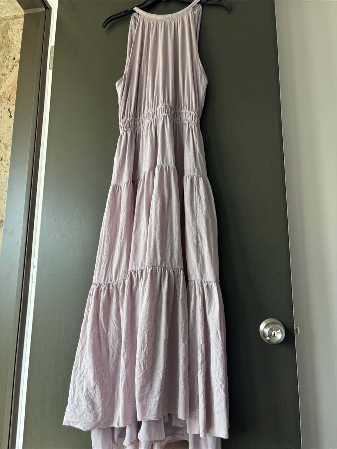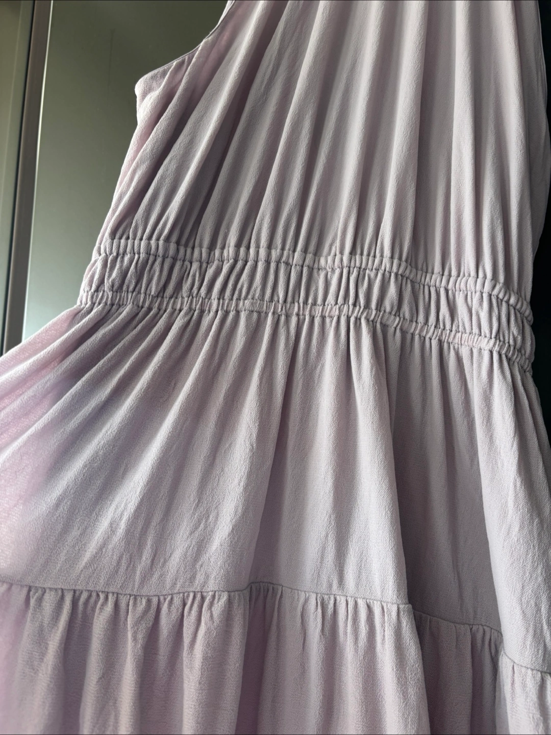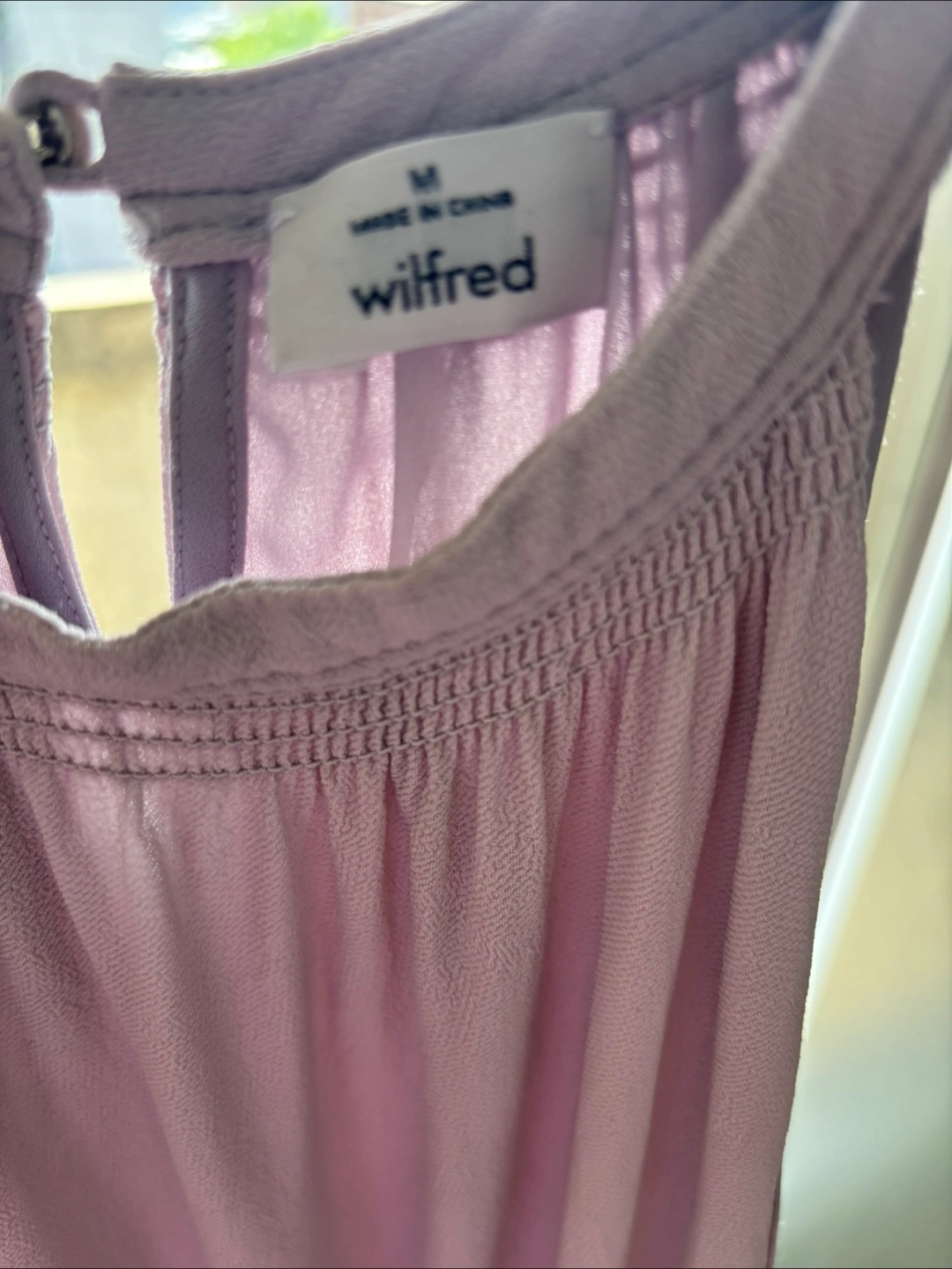 Selling a Wilfred Free maxi dress in a beautiful lilac colour! It's a size medium and in great condition. Perfect for summer days or evenings out. Brand NEW, never worn! Can be styled however you like! Has a doubler of the same colour underneath. Pick up from a public place or I can ship at your cost.