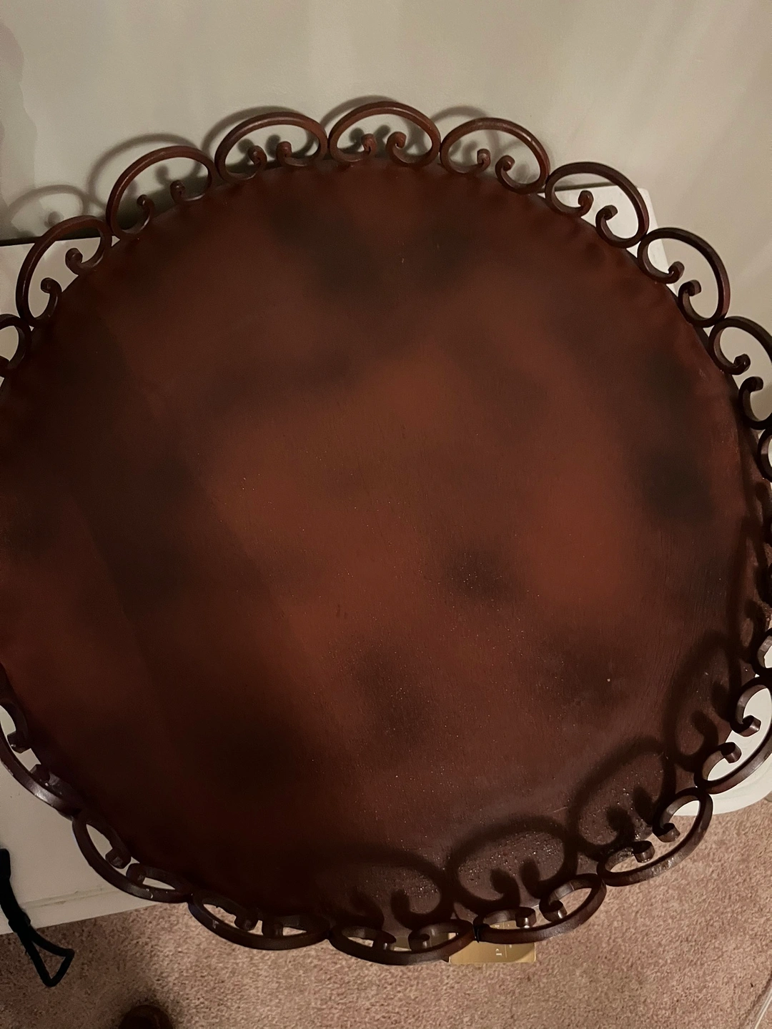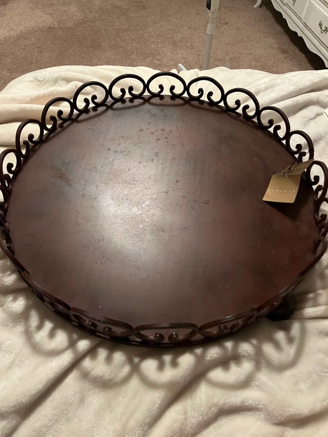 Pomeroy very heavy Round decorative tray with an ornate metal rim and a flat surface. Can use for little pots on top Serious buyers only please. Porch pick up at McCowan and 16th in Markham.