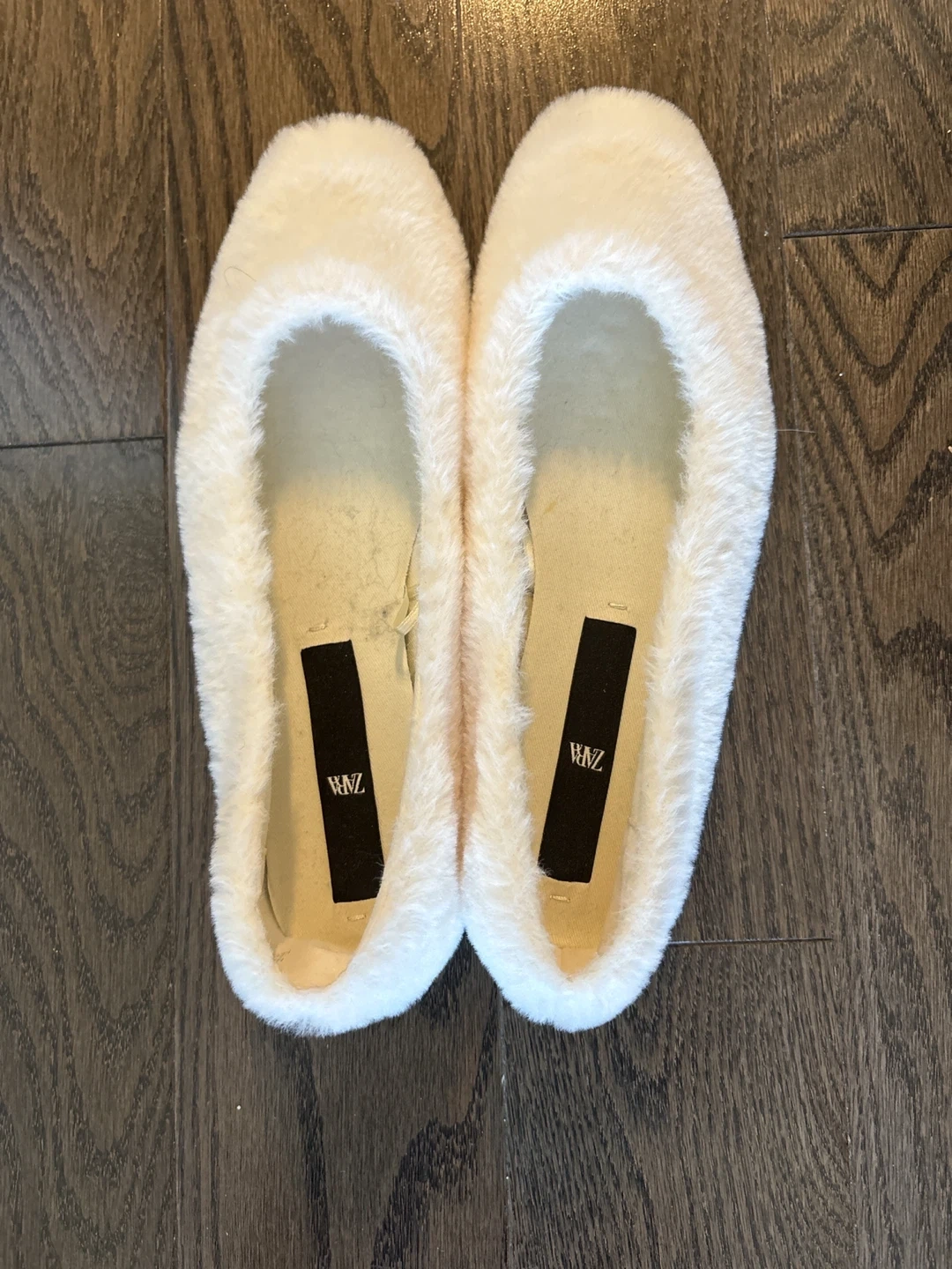 Show allBrand new Zara Size Cream faux fur ballet flats