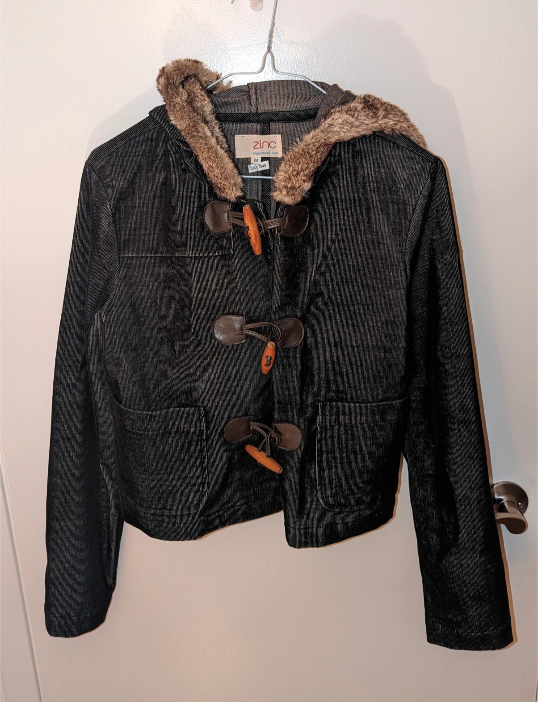 Cozy up in this Zinc corduroy jacket! It features a hood trimmed with faux fur and toggle closures. It's a size medium and in great condition, ready for a new home