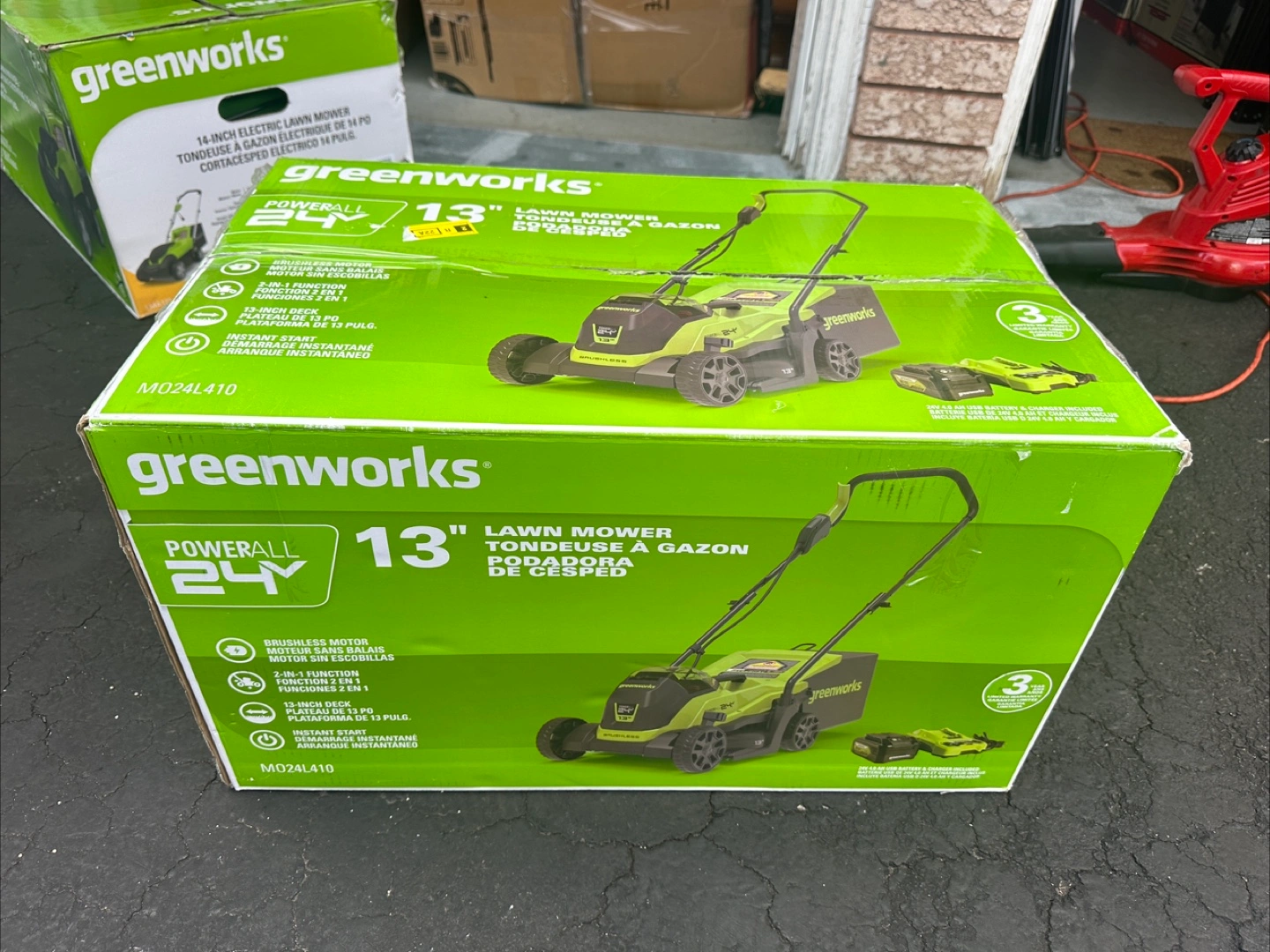 Mississauga, Brandnew Greenworks 24V 13" Brushless Push Cordless Lawn Mower, 4Ah USB Battery and Charger Included $300 firm