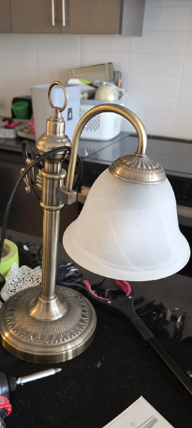 Selling a table lamp with a brass finish and a white shade. It would look great in any room!