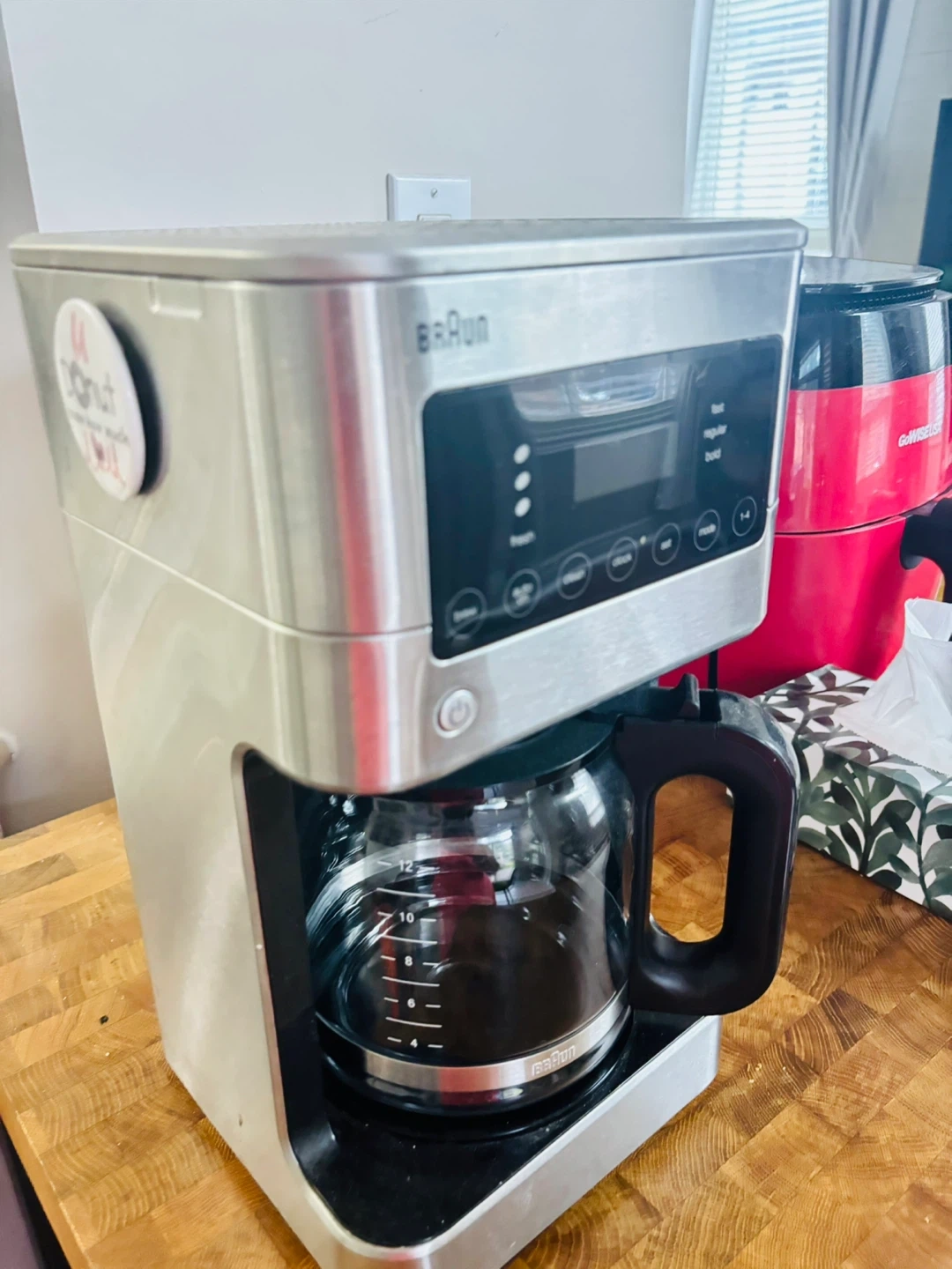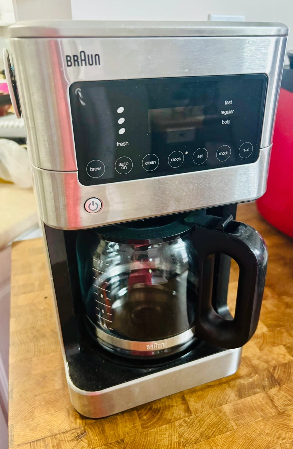 Selling a Braun BrewSense drip coffee maker! It's in great condition and ready to brew your favourite coffee. Features include fast, regular, and bold brew settings, as well as a fresh auto-on function. The carafe is included!