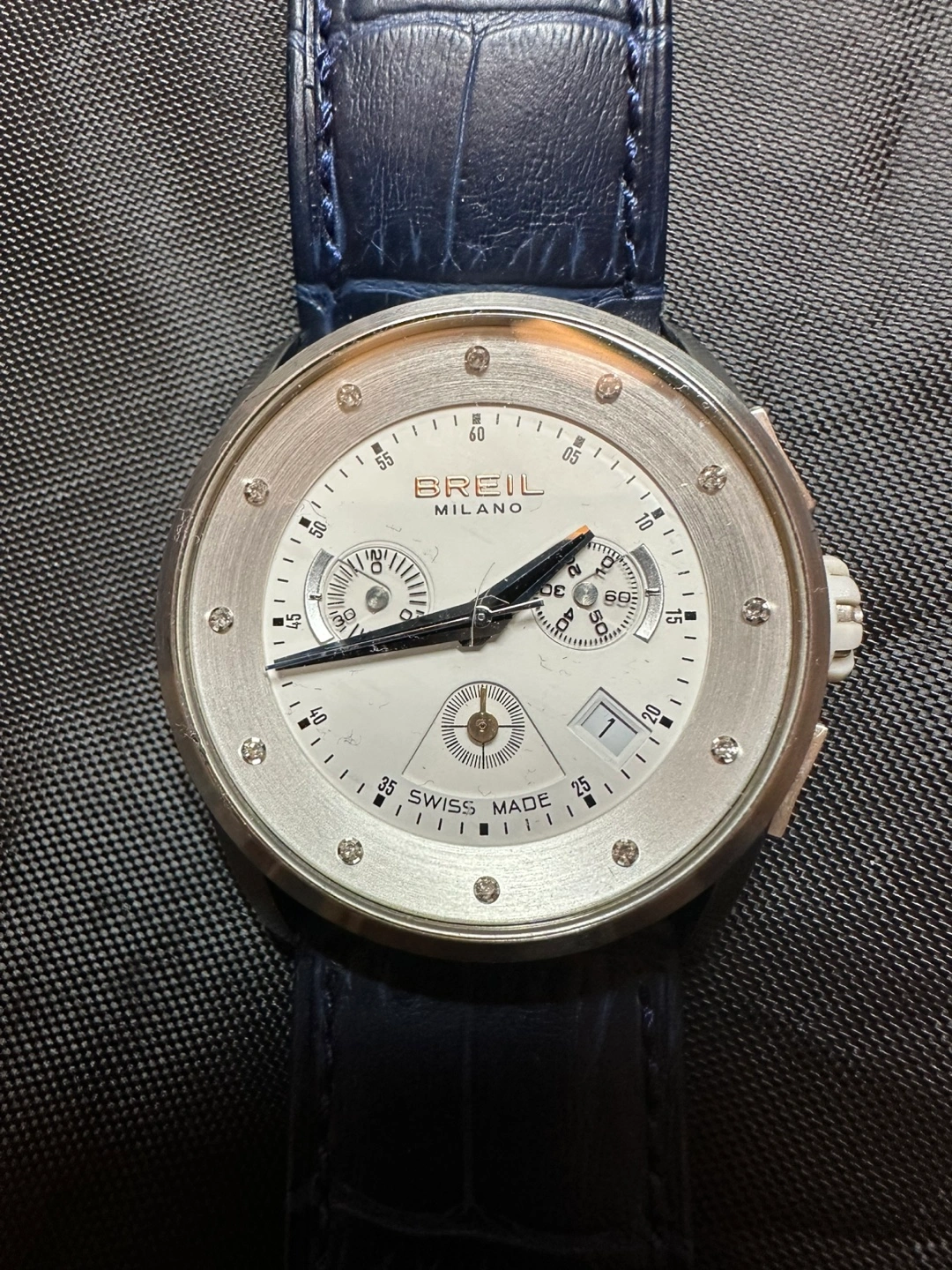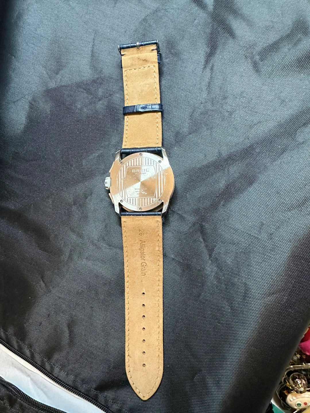 Selling a Breil Milano watch. It features a blue alligator grain strap and a silver-tone case. A stylish timepiece for any occasion!