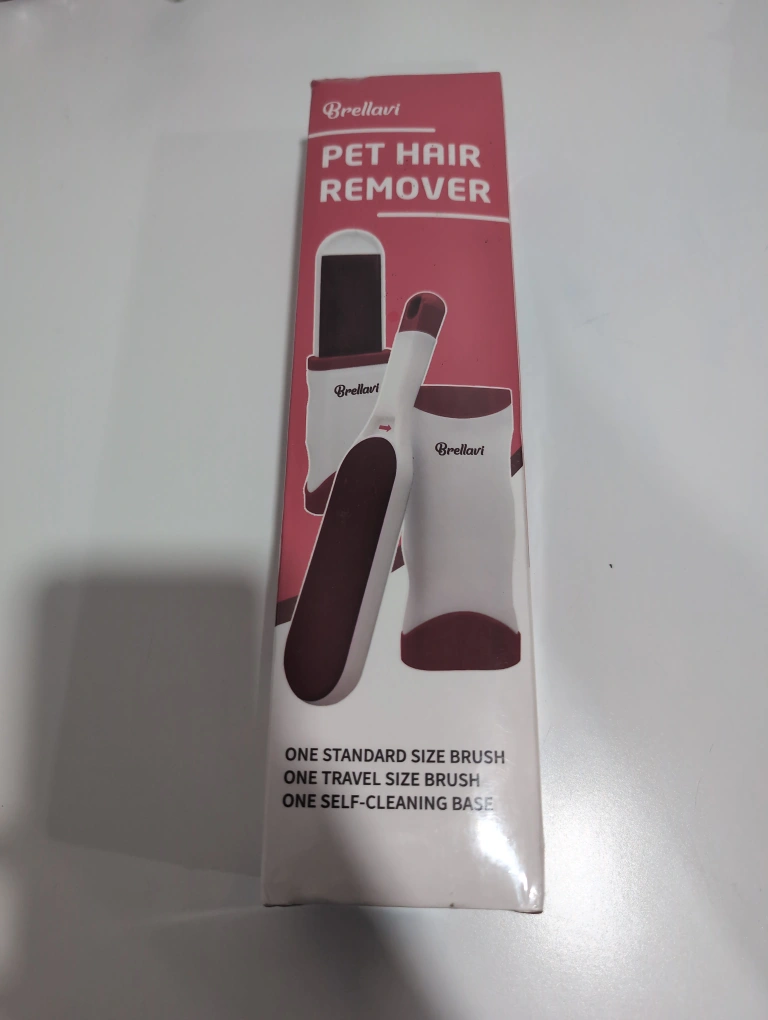 Keep your clothes and furniture fur-free with this Brellavi pet hair remover brush! It's designed to be comfortable and effortless to use. This set includes one standard size brush, one travel size brush, and one self-cleaning base. It's a convenient and mess-free way to remove pet hair, no refills or power plug needed