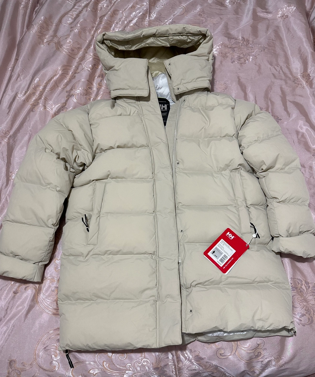 Light beige puffer jacket. Size M/M. Bought it , but it doesn’t fit me well, and couldn’t didn’t return on time as was on vacation Bought for $240 + tax Cash only