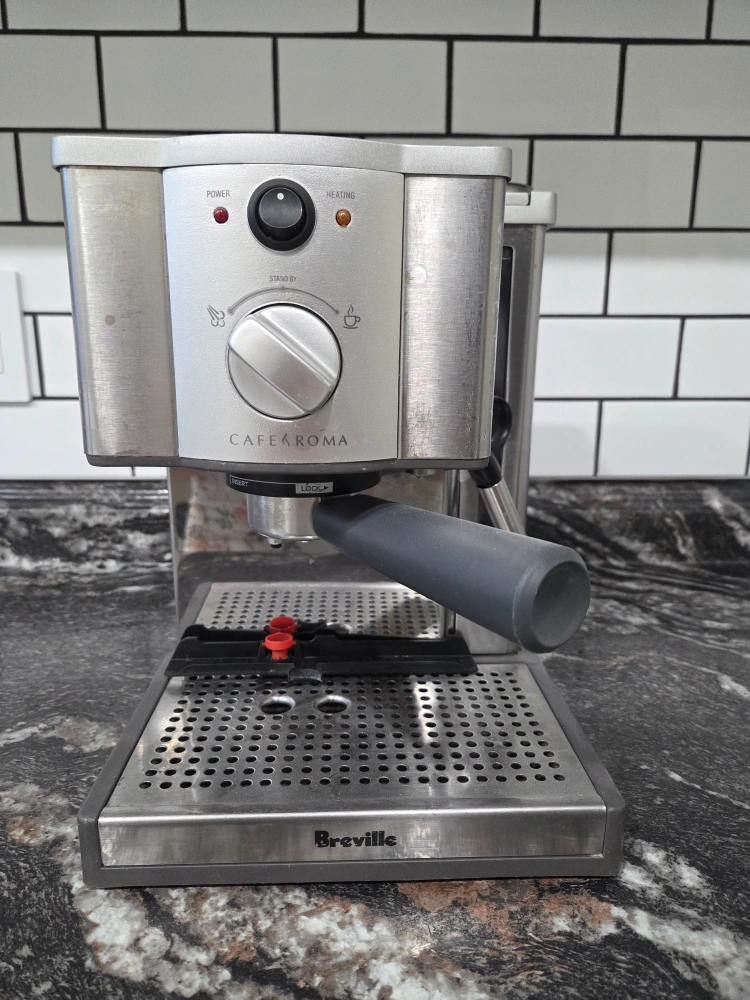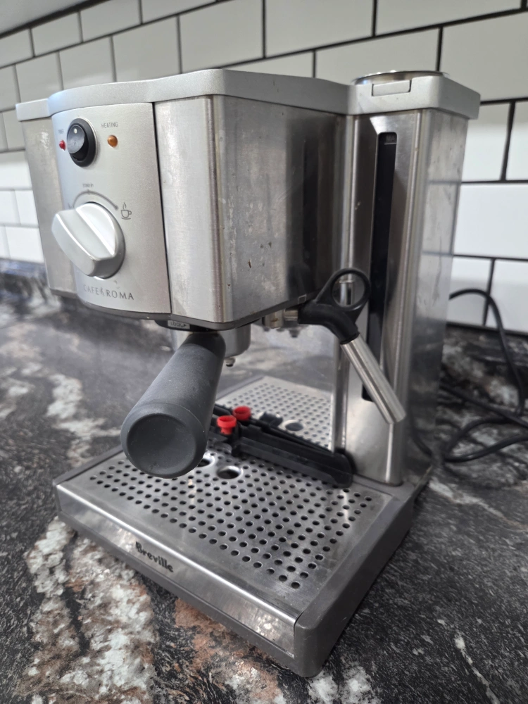 Selling a Breville Cafe Roma espresso maker. It's in good working condition and ready to make some delicious coffee! It has a stainless steel finish and is pretty compact for your kitchen counter. Perfect for anyone who loves a good espresso at home!