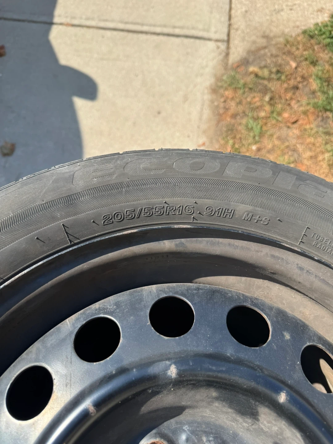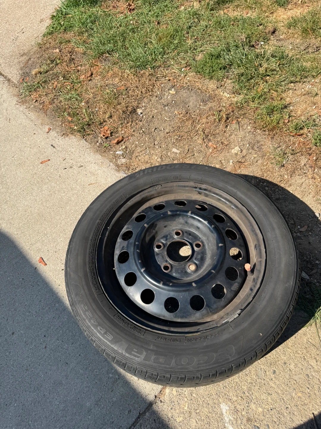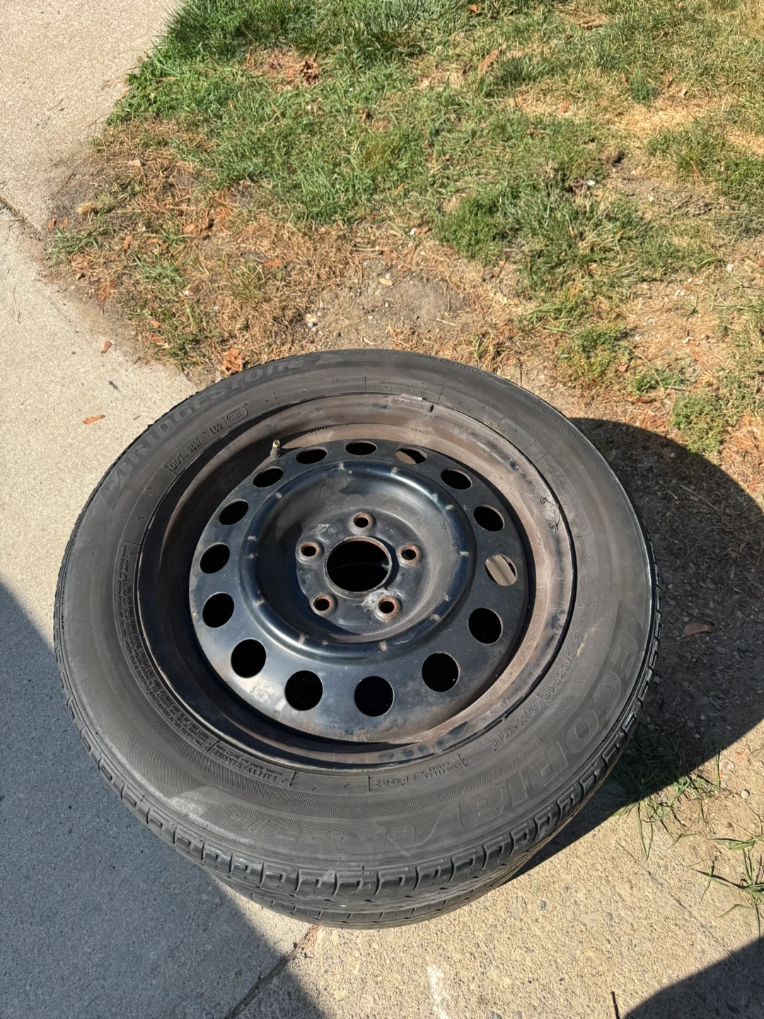 Selling a Bridgestone tire, size 205/55R16 91H M+S. It's in used condition and ready to be picked up! Only have 1 summer season left on the tires really just trying to sell the steel wheels, they are in great condition very little rust as these are my summer tires Had them on a 2014 Hyundai Elantra Bolt pattern is 5x114.3