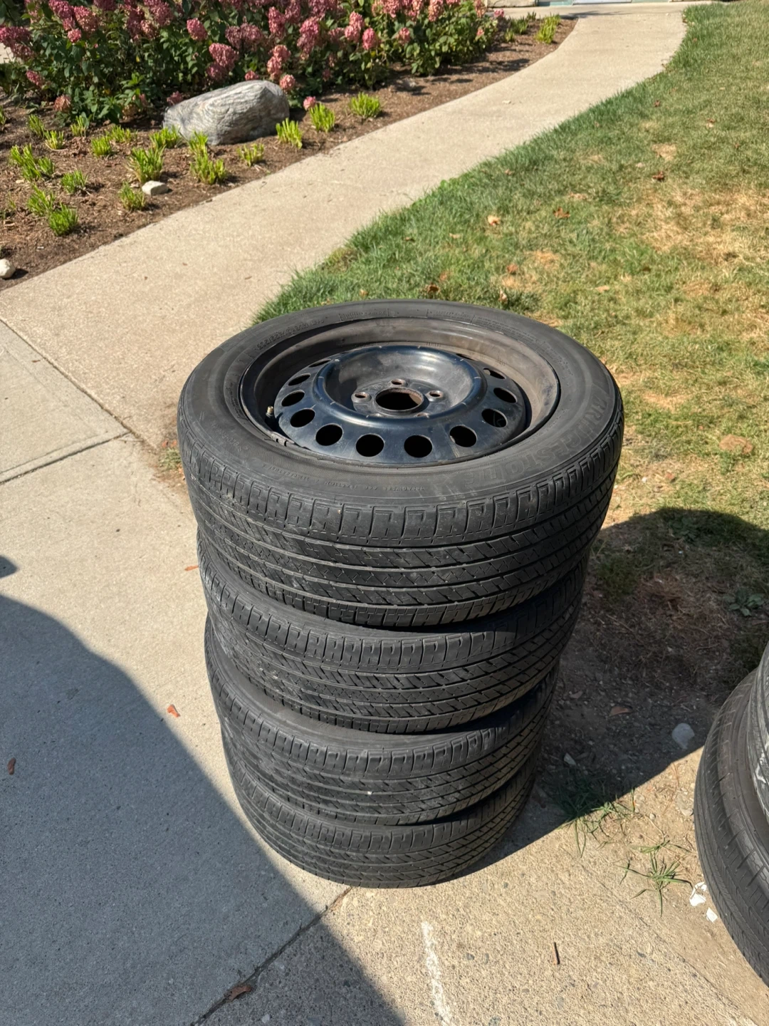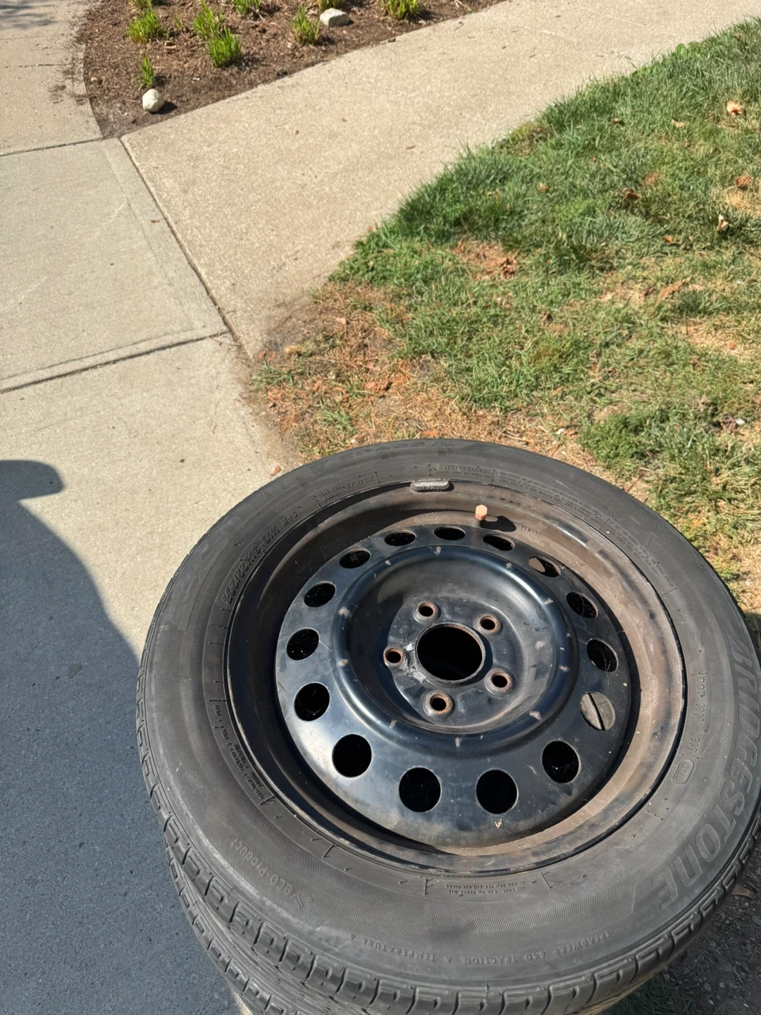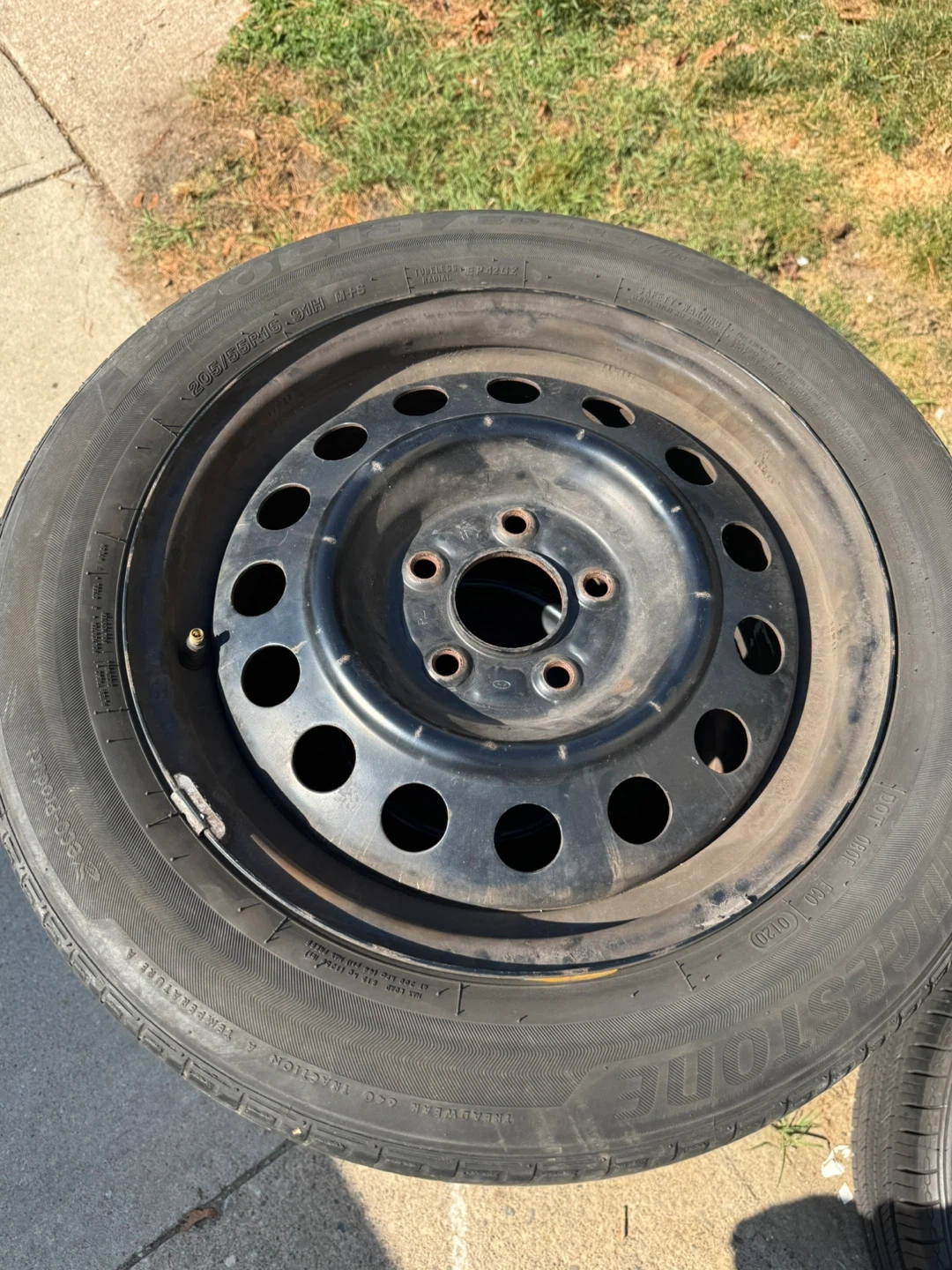 Selling a Bridgestone tire, size 205/55R16 91H M+S. It's in used condition and ready to be picked up! Only have 1 summer season left on the tires really just trying to sell the steel wheels, they are in great condition very little rust as these are my summer tires Had them on a 2014 Hyundai Elantra Bolt pattern is 5x114.3