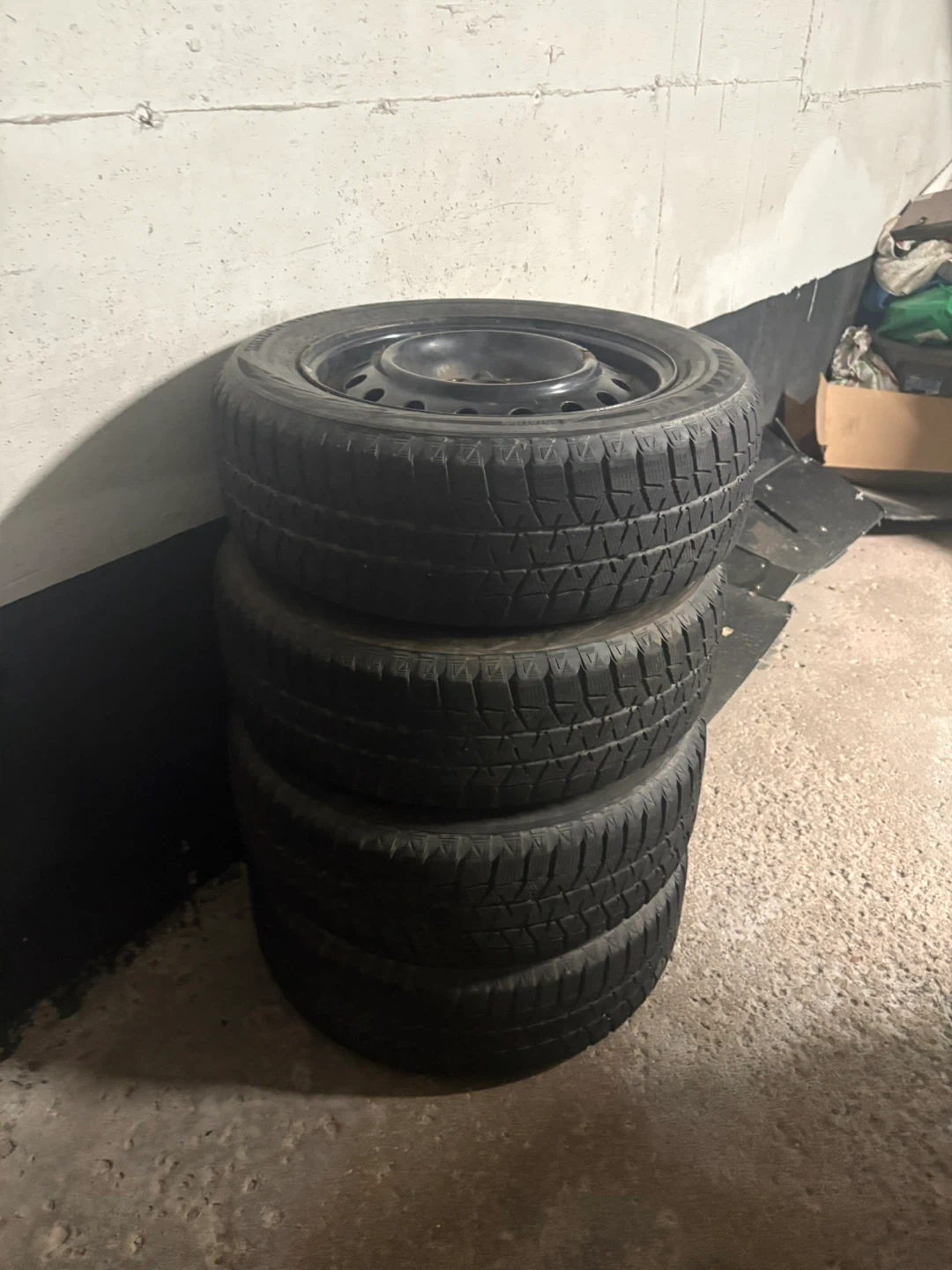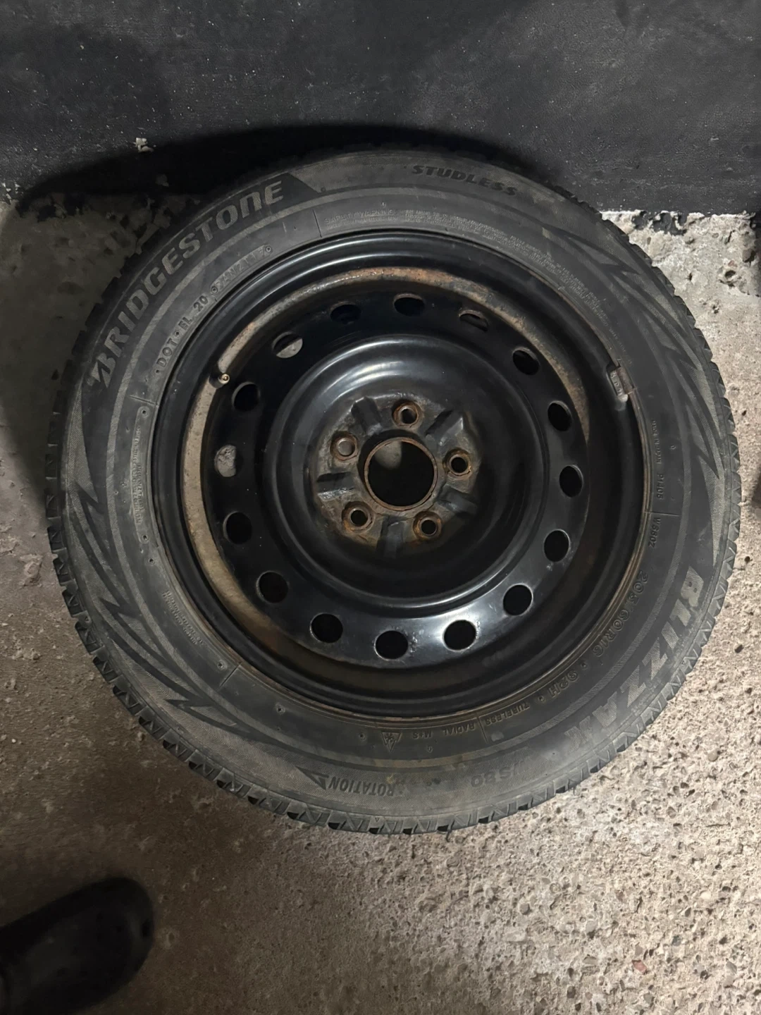 Used for one winter! All 4 tires are in good condition. There is rust on the rims