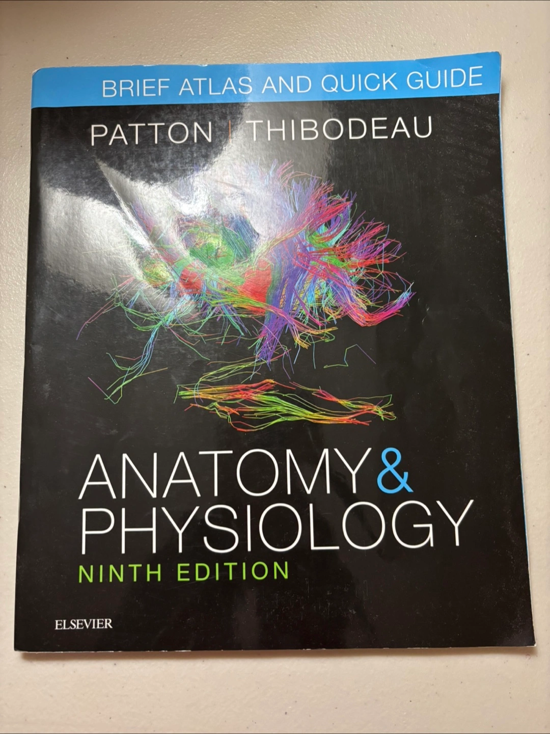 Selling a copy of 'Brief Atlas & Quick Guide for Anatomy & Physiology, 9th Edition' by Kevin T. Patton and Gary A. Thibodeau. This book is a helpful resource for studying the human body, including dissected organs, the skeleton, and human tissues. Inside, you'll also find a guide to the language of science and medicine, covering prefixes, suffixes, roots, and symbols. Perfect for students!